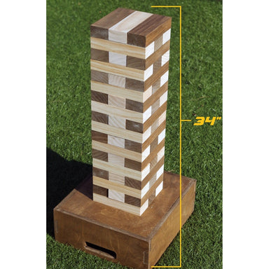 Customizable Giant Tumble Tower This Giant Tumble Tower includes 54 — 2x3x7.5" pieces and 18 rows of tumbling fun! This game stands 34 inches tall...