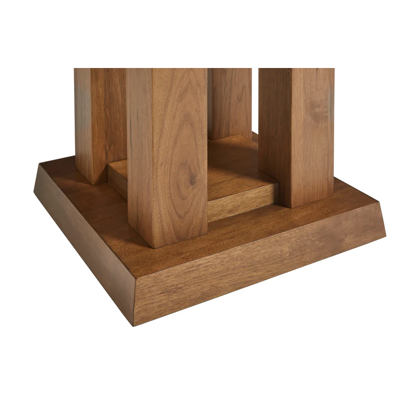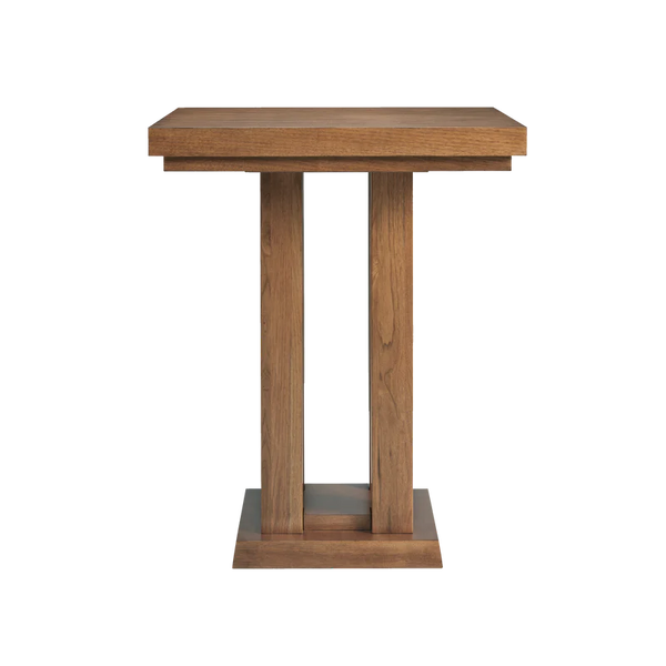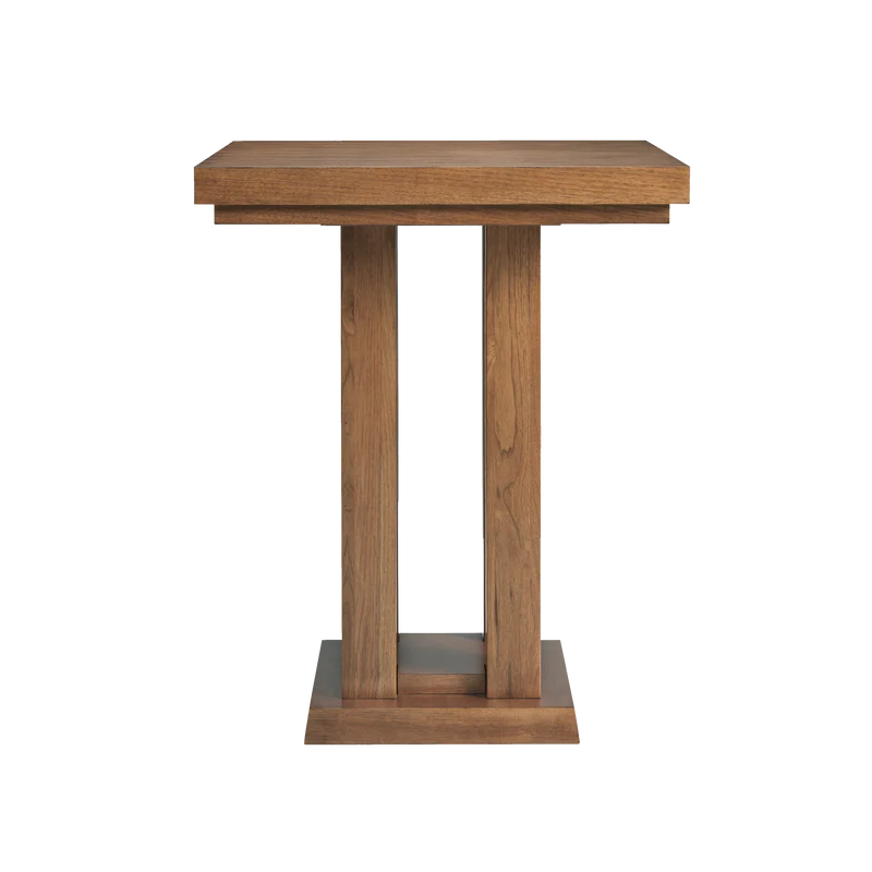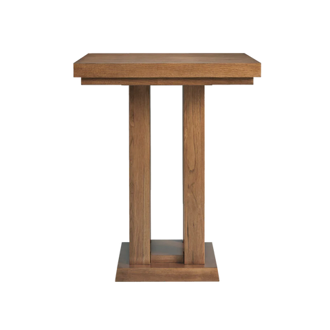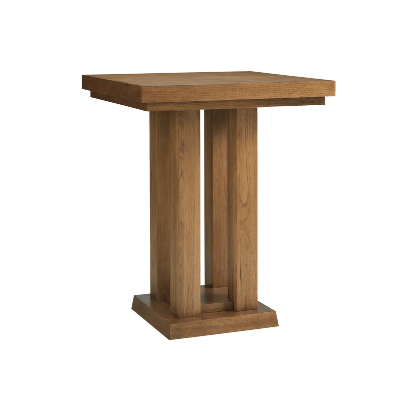 This contemporary, Alta pub table has a 34” square top and stands 42.5" tall. It has a sturdy top and sits upon a rugged four post frame, creating a cozy space for enjoying time with family and friends.