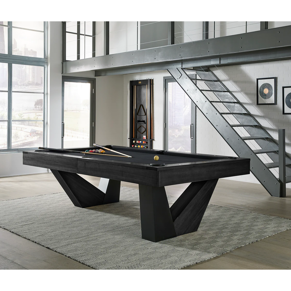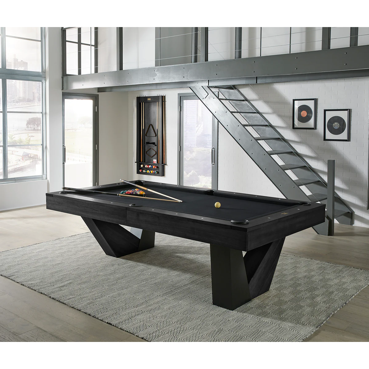 Pair this billiard table with a dining conversion top for ultimate entertaining. Available in three finish options: Brushed Walnut, Black Ash and Natural Ash Finish with matte black powder coated leg.