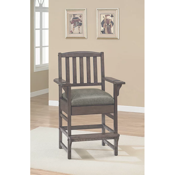 Crafted to reflect its name, keep your eyes on the action with this stately viewing chair. The King Chair touts a wide and slatted back, armrests complete with cup-holders and notches for billiard cues, and a hidden drawer for storage.
