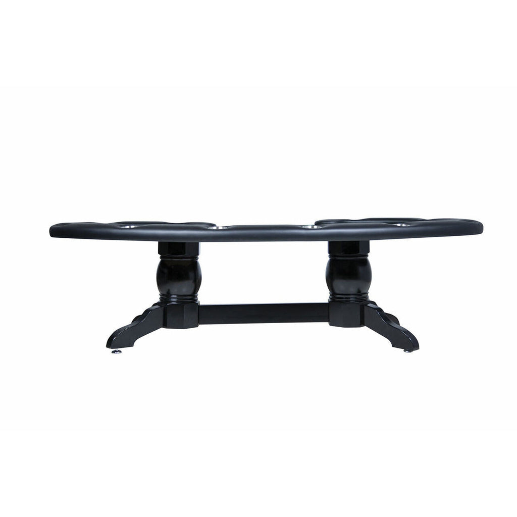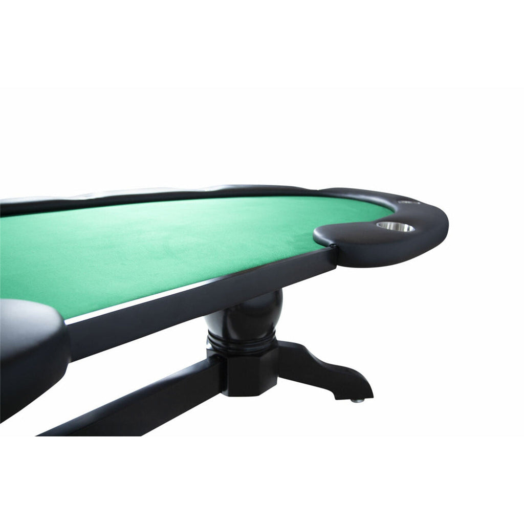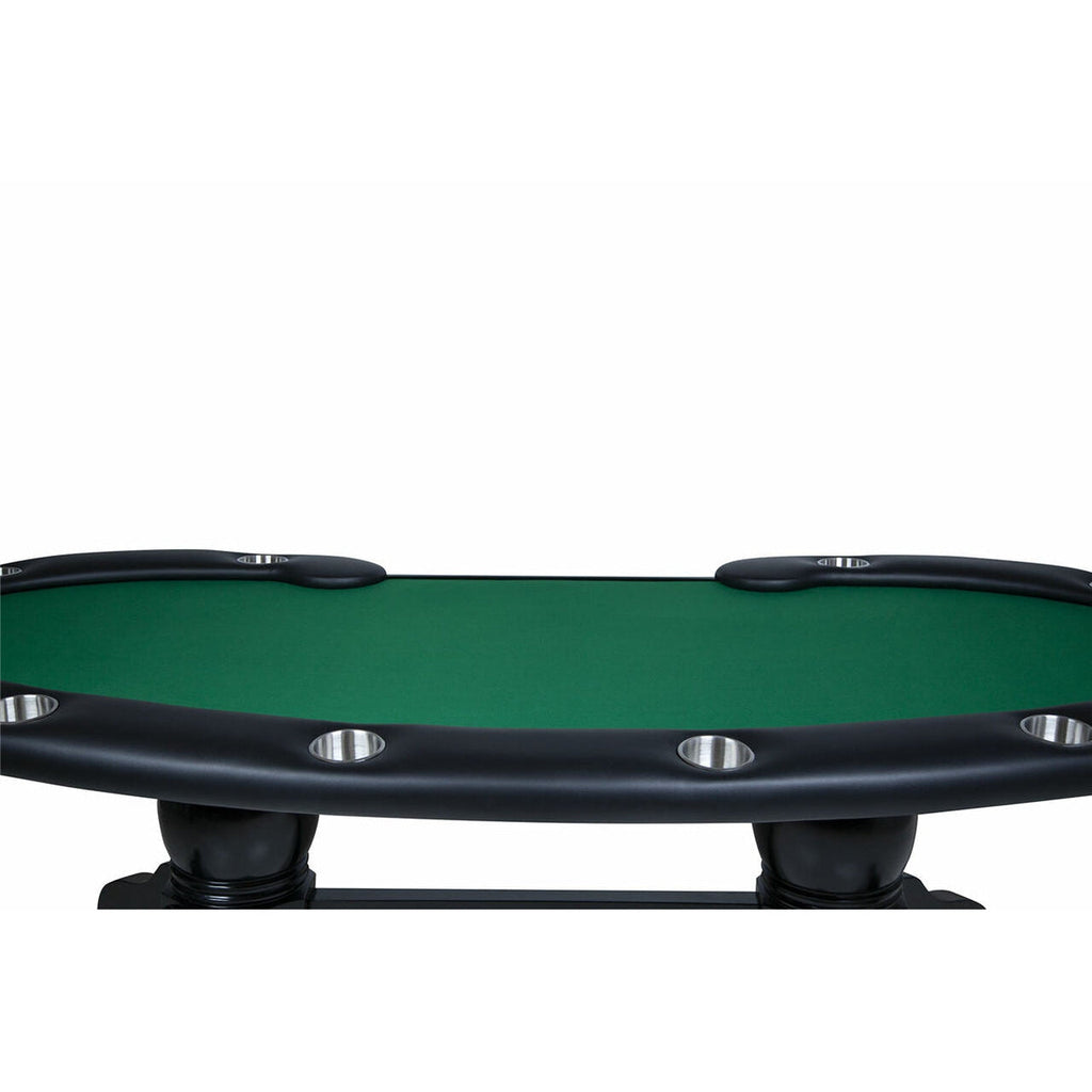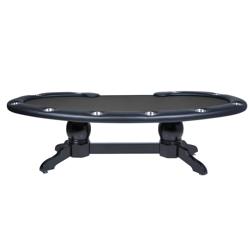 A spacious, ten player plus dealer 'kidney bean- shaped poker table with premium Duke legs. Card-room approved!