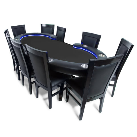 With solid wood “Napa” pedestal legs and remote controlled waterproof LED trim, the Lumen HD will create an extraordinary poker experience.