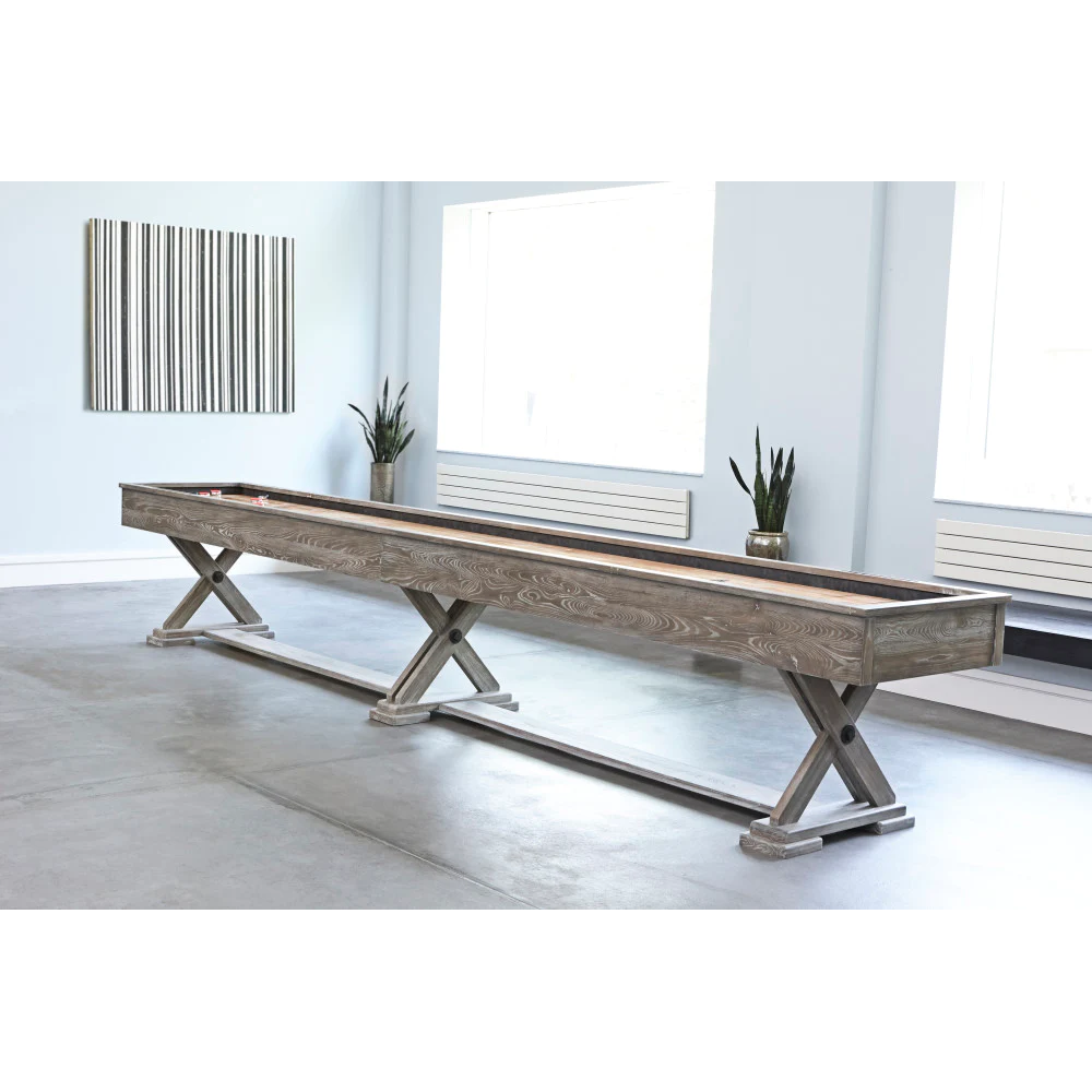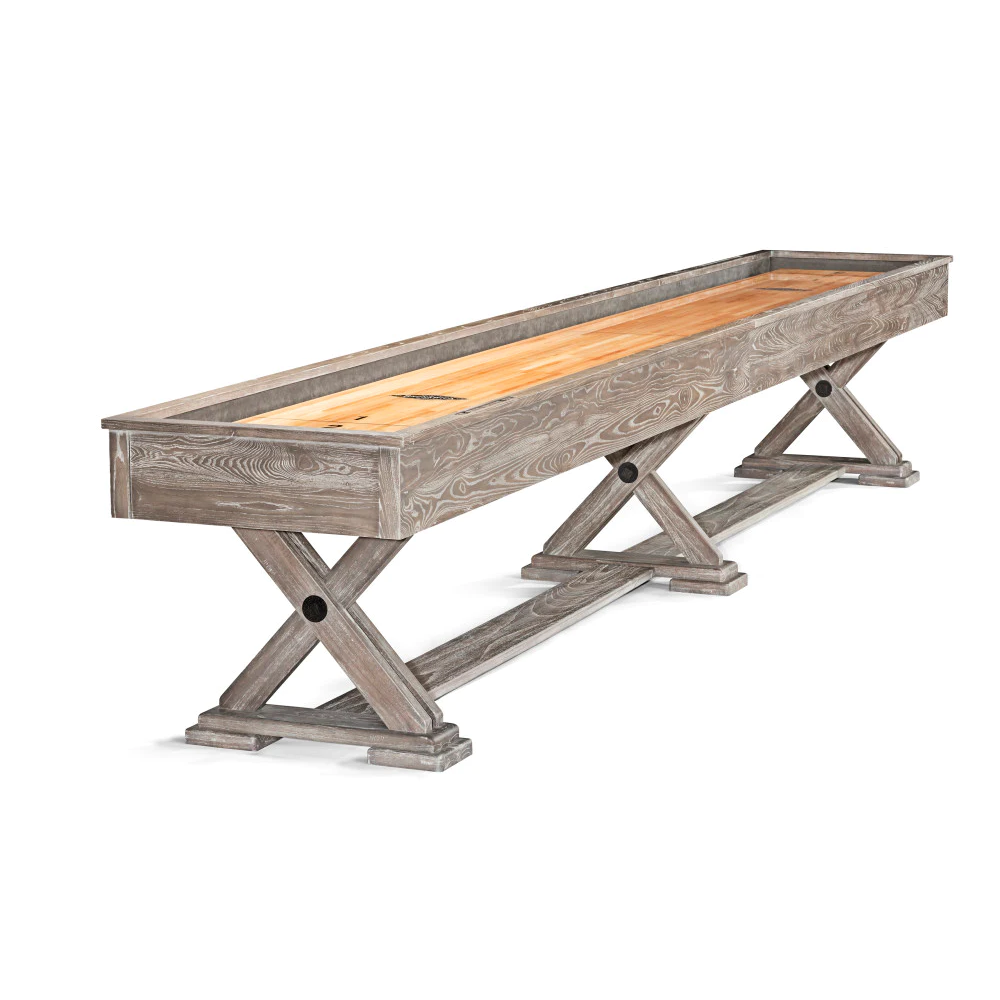 Elevate your game room with the Brunswick Billiards Brixton Shuffleboard Table. Boasting clean lines and a sturdy, streamlined design, this table features a unique "X" foundation, a perfect complement to the best-selling Brixton Billiards Table. Available in a distinctive driftwood finish, the Brixton offers a 12' or 14'-foot-long play surface, ensuring both quality and playability.