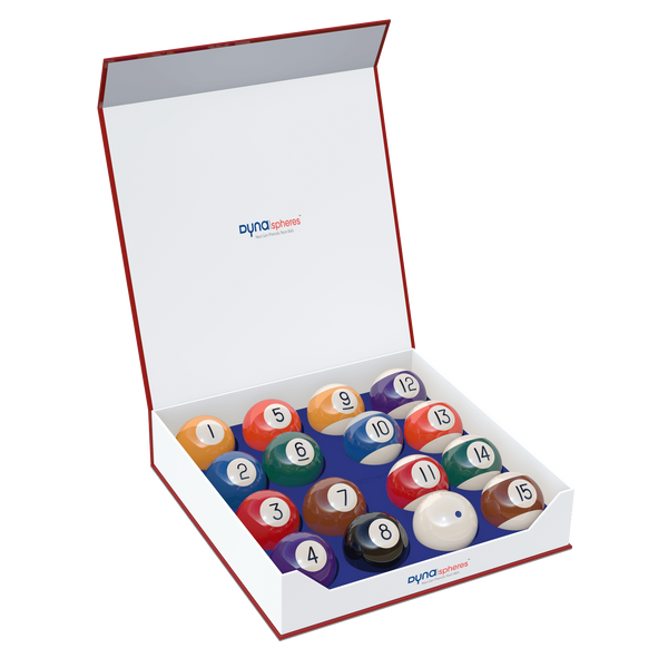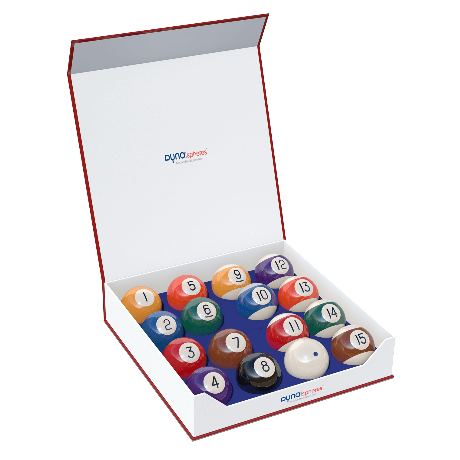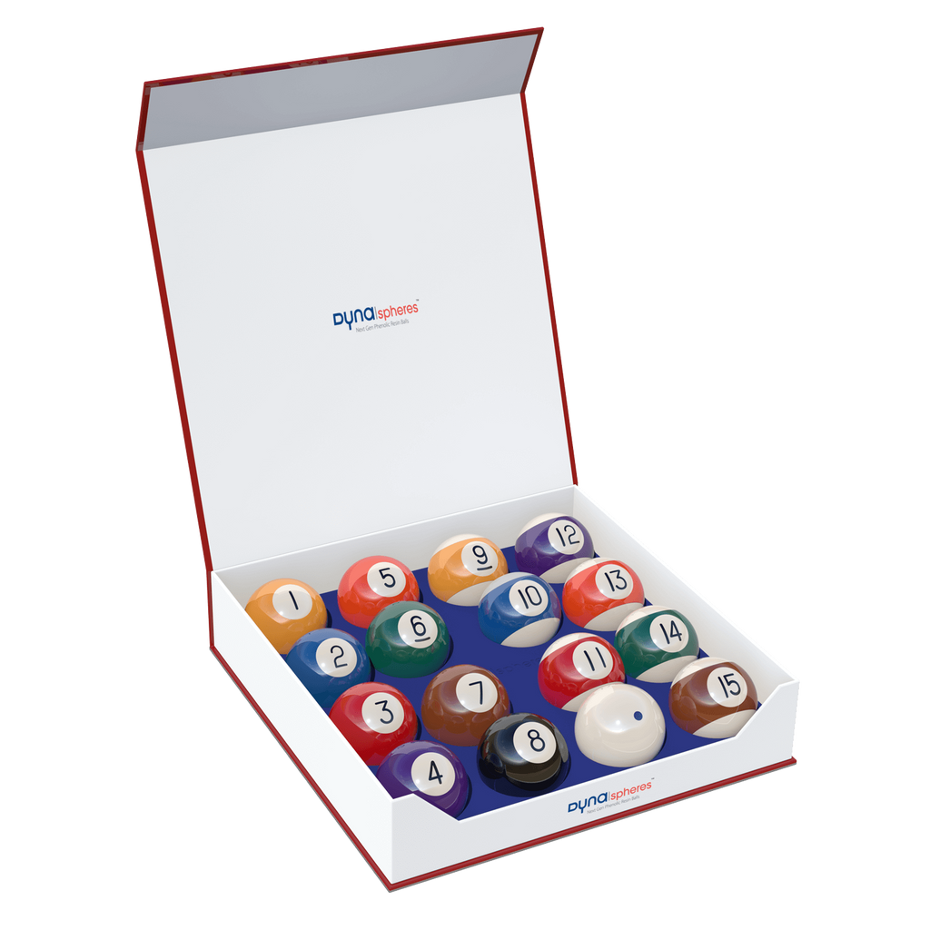 Cue- ball is marked with 6 blue dots for increased feedback on spin.