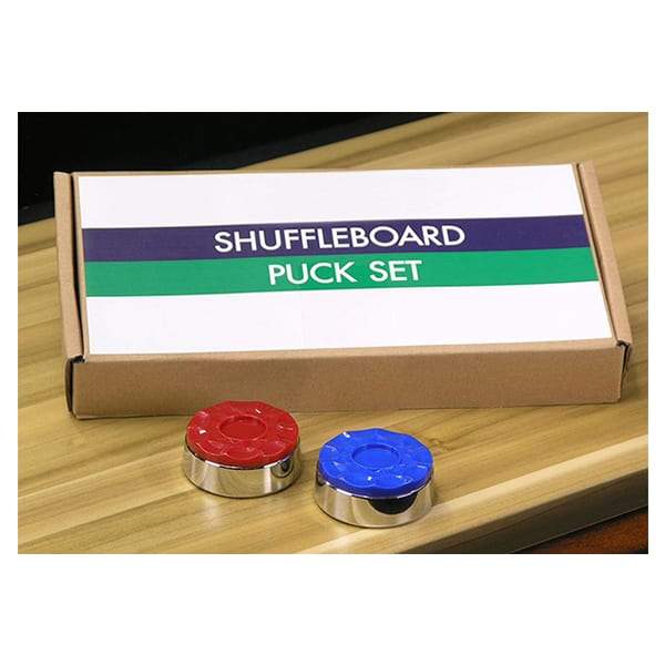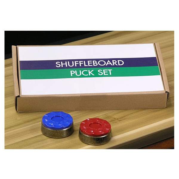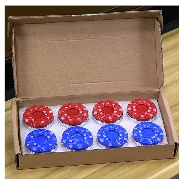 - Set of 8 shuffleboard pucks, 4 Red and 4 blue