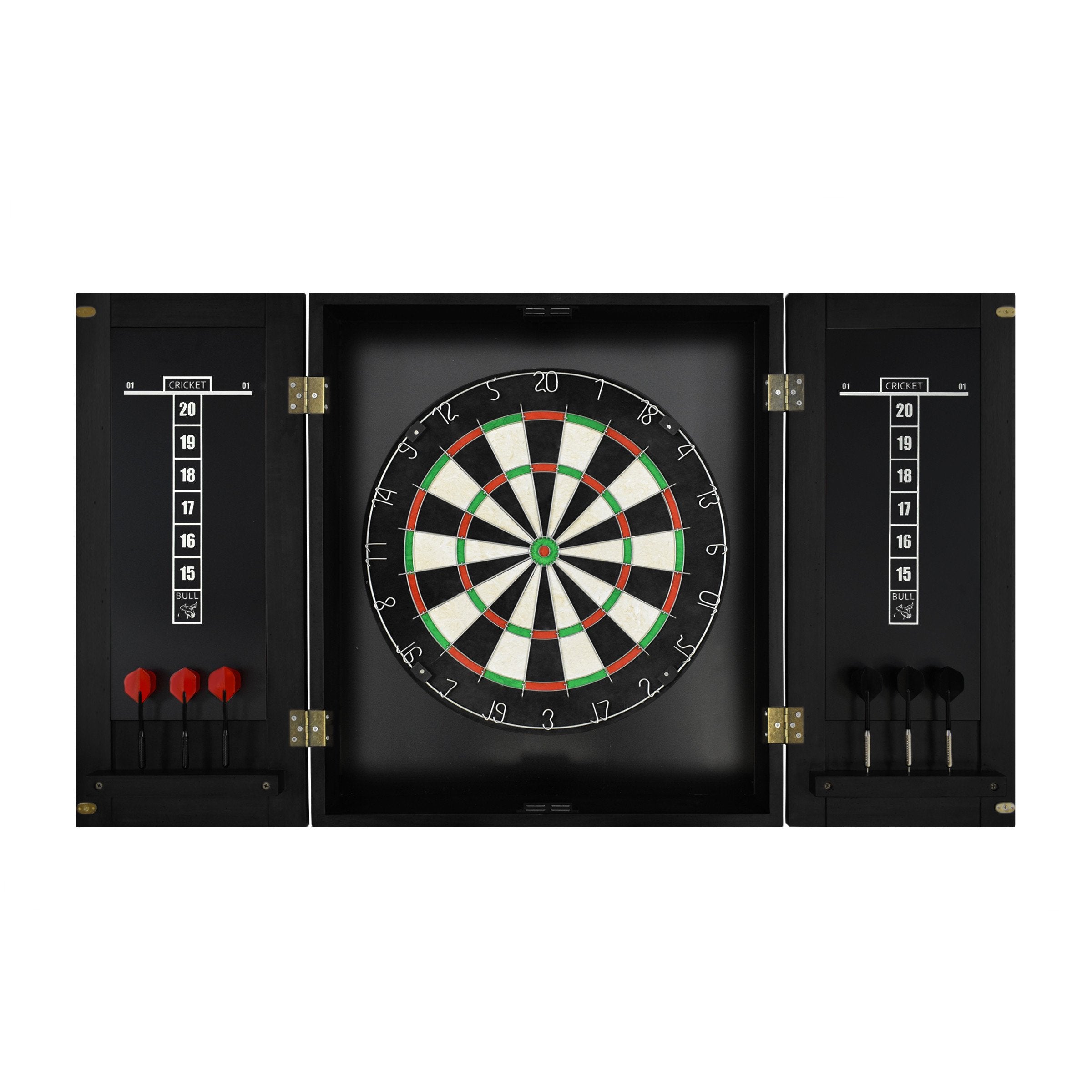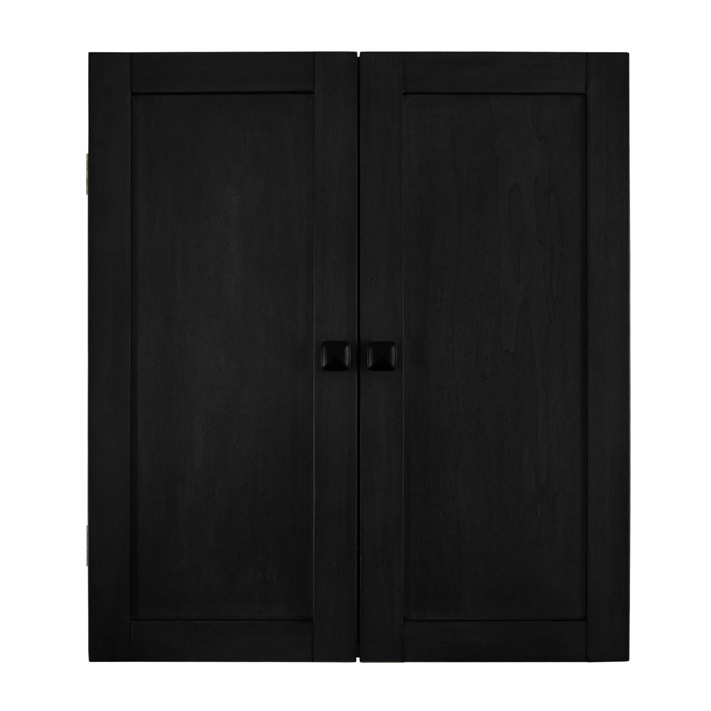 The Imperial Dart Cabinet is made of solid wood and comes complete with an 18" bristle dartboard, set of 6 darts, pen and eraser, and wall mounting hardware. The Dart Cabinet is featured in six finishes, making it easy to pair with your Imperial pool table or shuffleboard and create the perfect game room. Assembly is simple; just attach the dartboard to the inside of the cabinet, mount the cabinet to the wall of your choice, and you're ready to play.