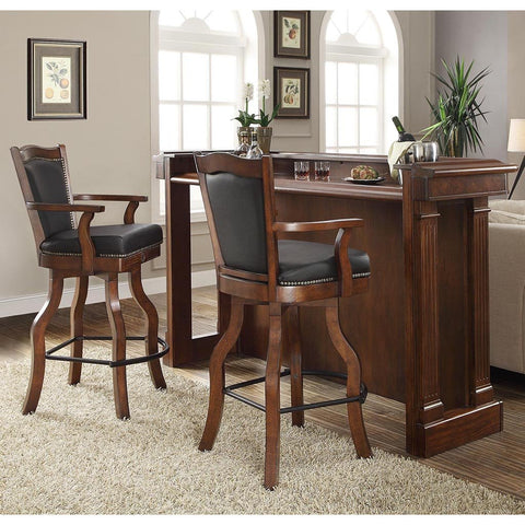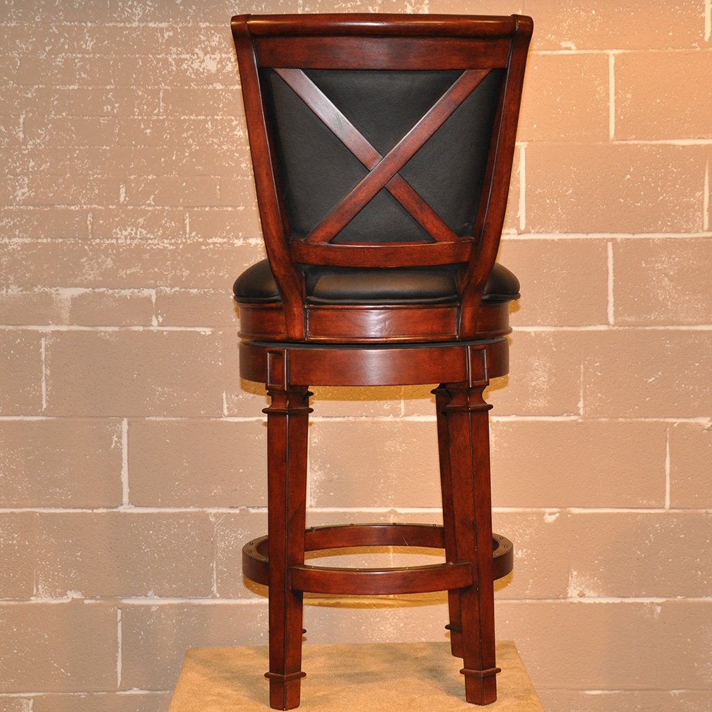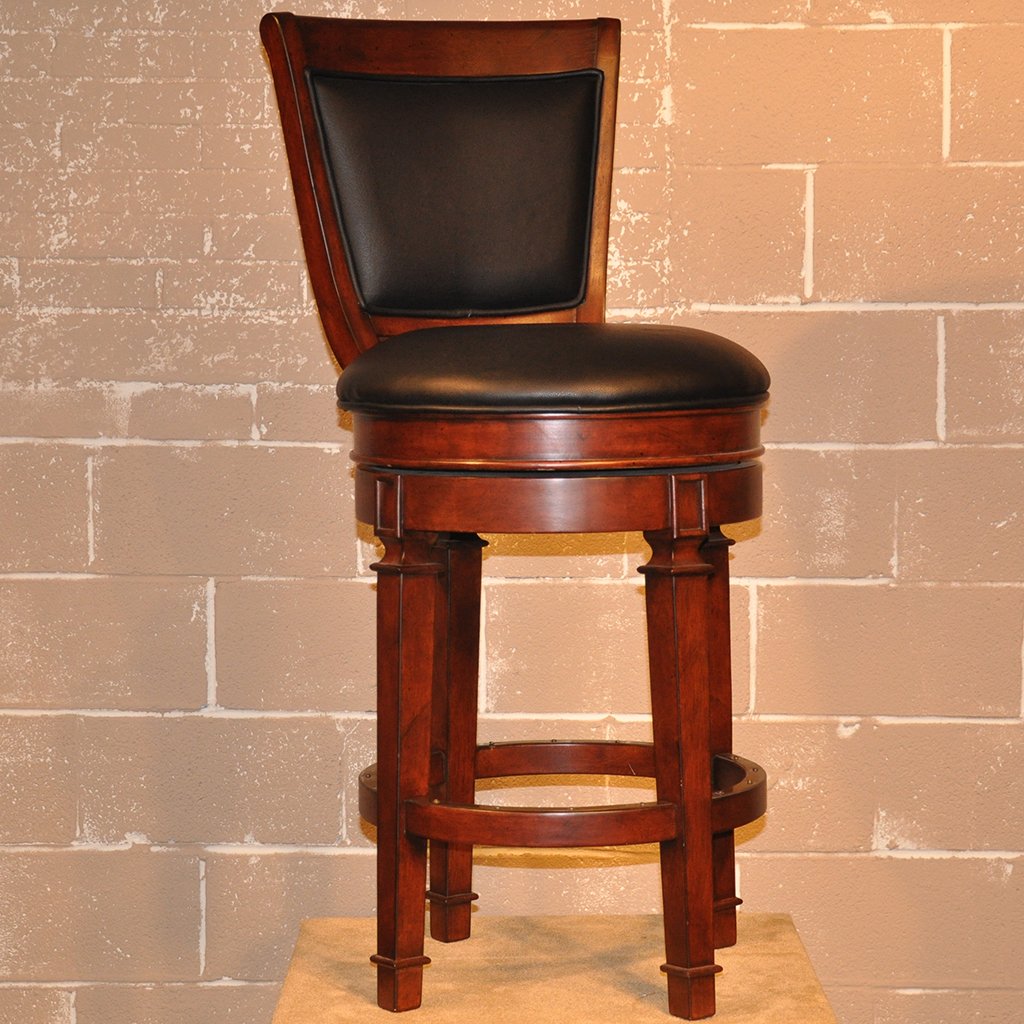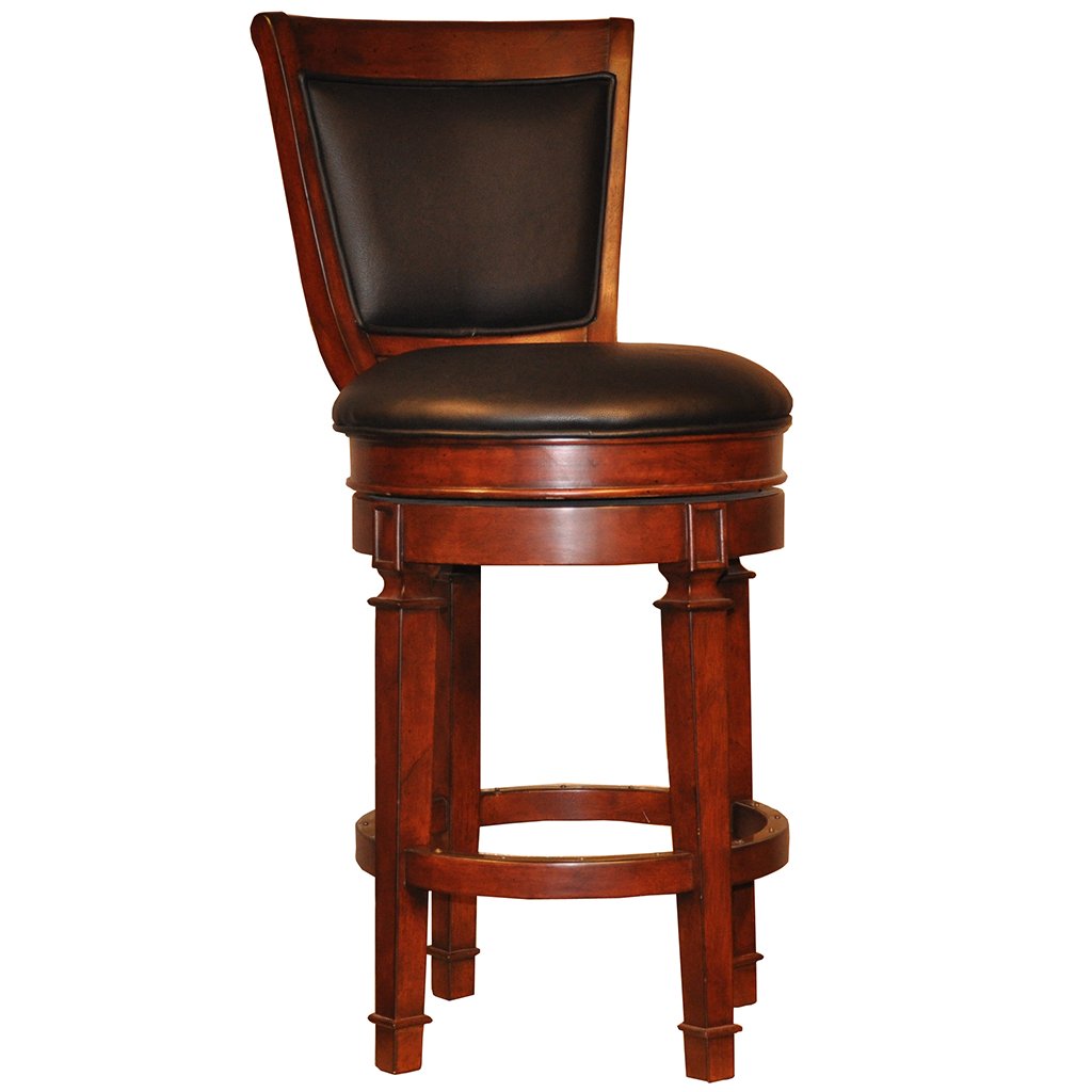 Richly finished in warm cappuccino, this solid wood swivel barstool features full armrests and a padded seat for optimal relaxation. Features: Mat...