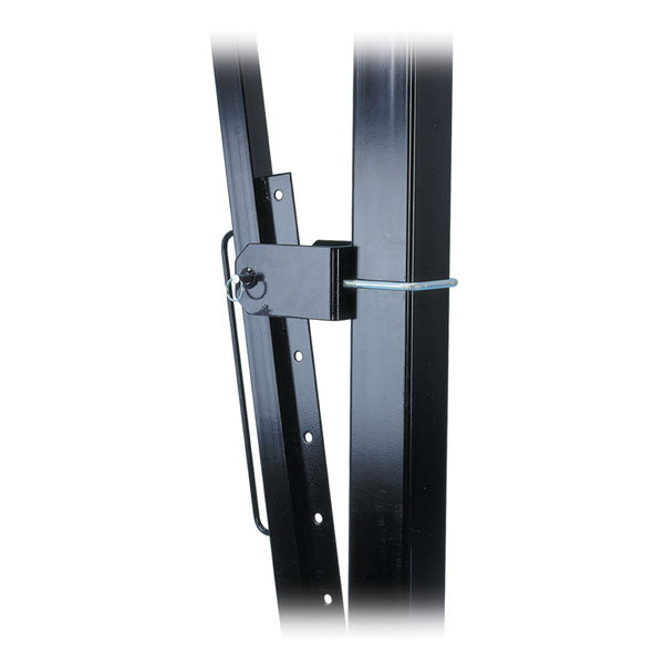 The rugged 4" square one piece 11 gauge post will not wobble and separate like sectional posts. The handy cam lever handle on the front makes one person transport simple over any hard, smooth surface.
