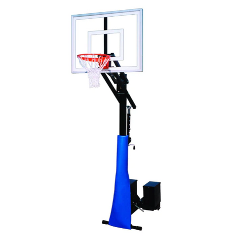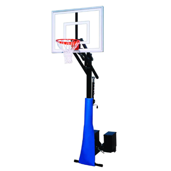 To transport RollaJam portable basketball hoops, simply retract the vertical post, using the post actuator located on the base unit. As the post pitches back, the unit lowers onto the transport wheel. Return the post to its vertical position and the portable basketball backboard is ready for play. The goal rolls easily into any garage, or through any set of double doors. A high quality post pad covers the front of the unit.
