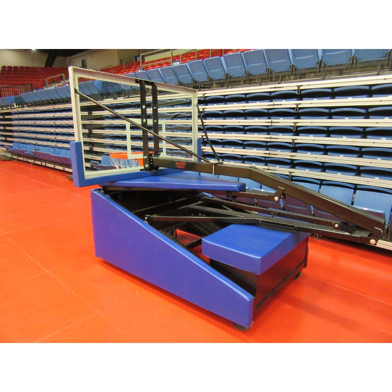 The Storm is a portable basketball goal designed for use in a gymnasium, fieldhouse, multipurpose facility, or recreational complex. The Storm is adjustable. Height adjustments from 10' down to 6' are made easily with the Storm's spring-aided design. To adjust simply pull the pin located on the adjustment rod, raise or lower the unit as needed and replace the pin.
