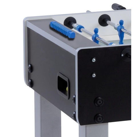 Unlike the ITSF models, G500 Evolution offers the choice between a rotating or non-rotating goalkeeper, a sanded or glossy glass playing field, as well as telescopic bars to allow children greater safety.