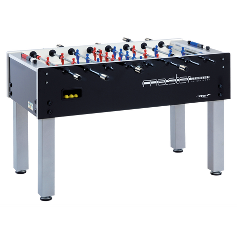 Used by professional players in tournaments worldwide, it boasts competition score counters and leg levellers, rubbers on the bars and a distancer to keep the goalkeeper within the goal range, among many others.