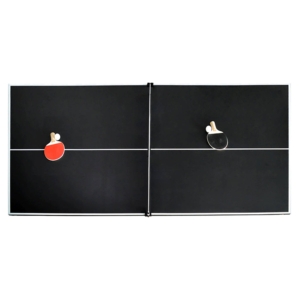 Durable Black plastic molded drop pockets and EVA rubber cushions for accurate and fast ball rebound round out the great features on this billiard table. The included quick change over table tennis top adds another dimension of competitive fun within the same space.