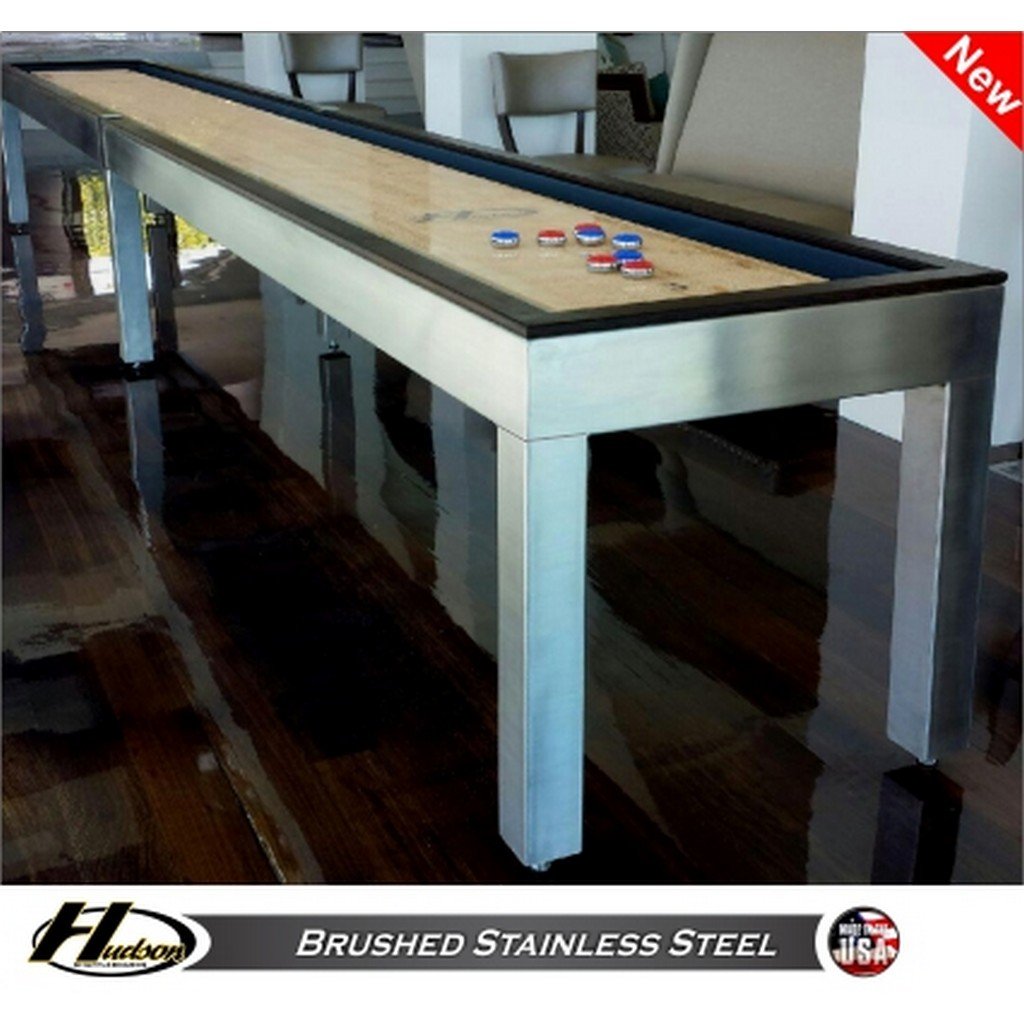 Contemporary…Sleek…Quality! New from Hudson Shuffleboards, the Brushed Stainless Steel Shuffleboard is a sleek and contemporary design that brings shuffleboard into the new era.