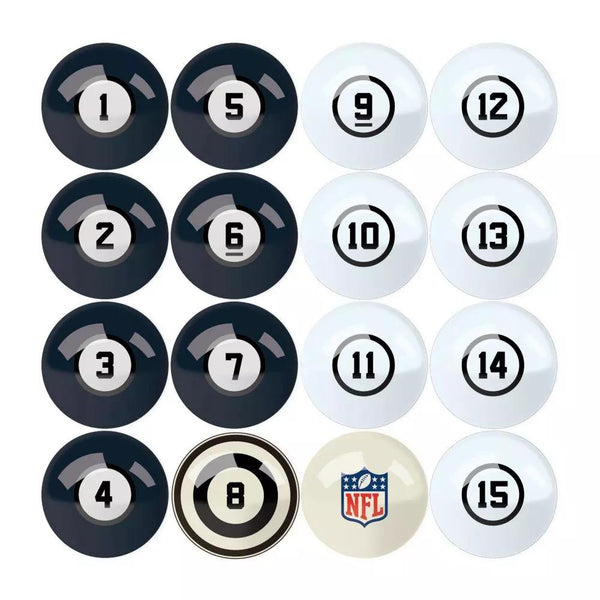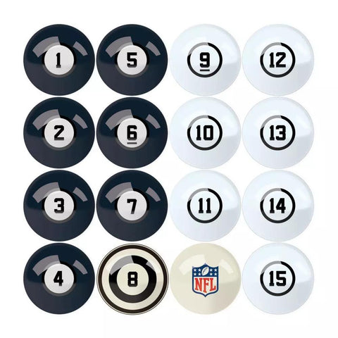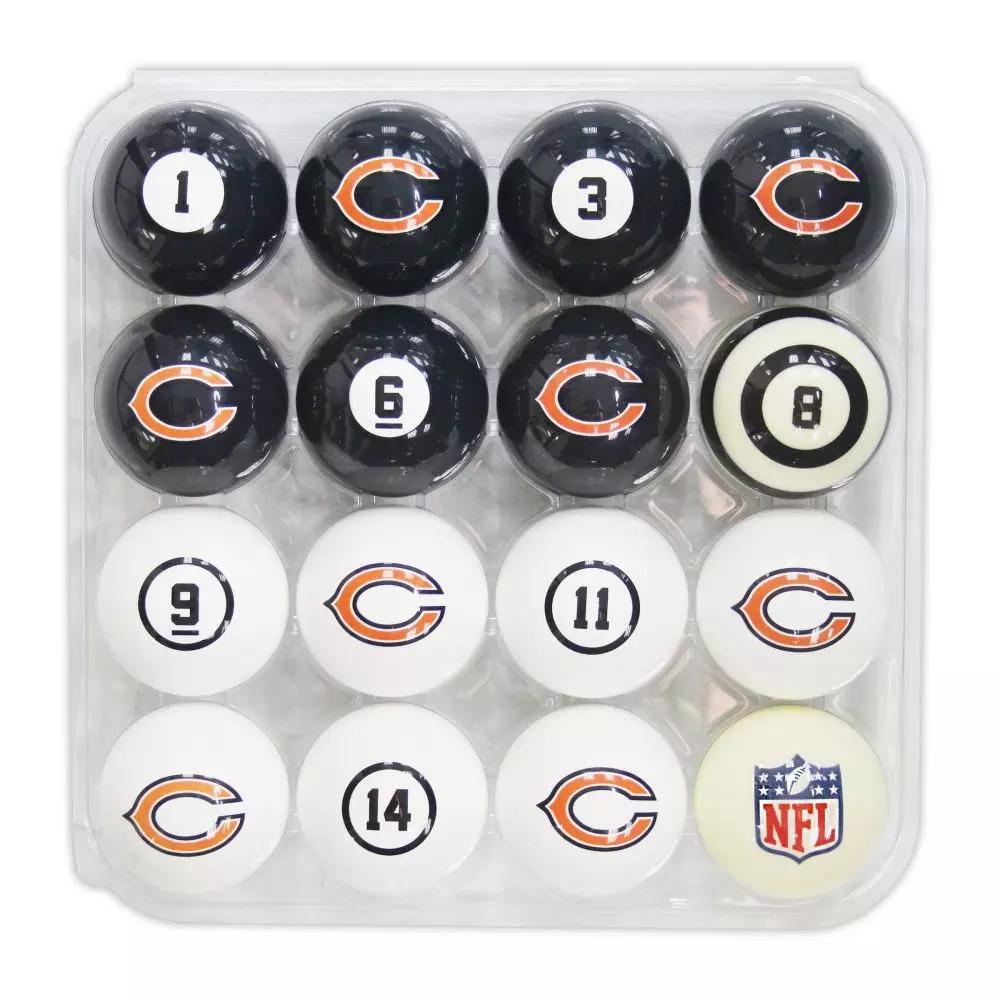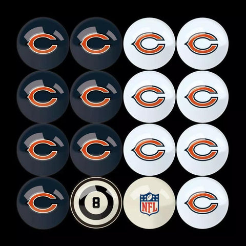 Take the Chicago Bears to the pool table and enjoy a quick game of 8 balls or 9 balls. These balls have large team logos and numbers and really pop! Balls are regulation size and weight and made of a polyester resin that resists chipping and cracking. Time to get you a set!