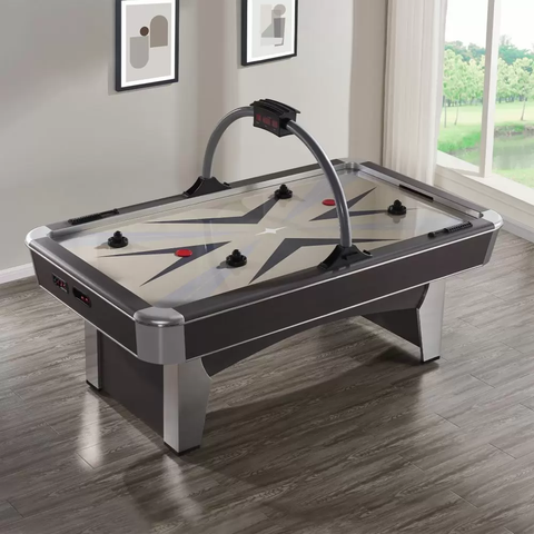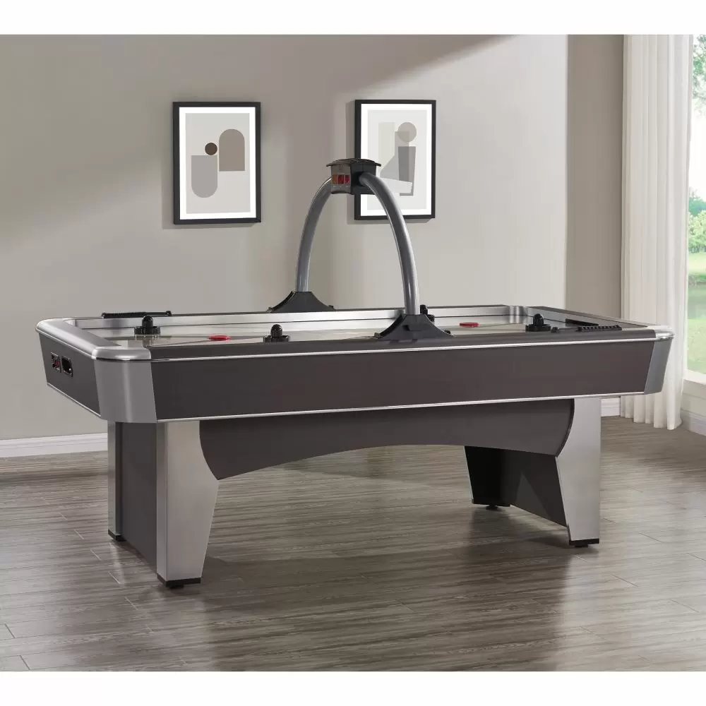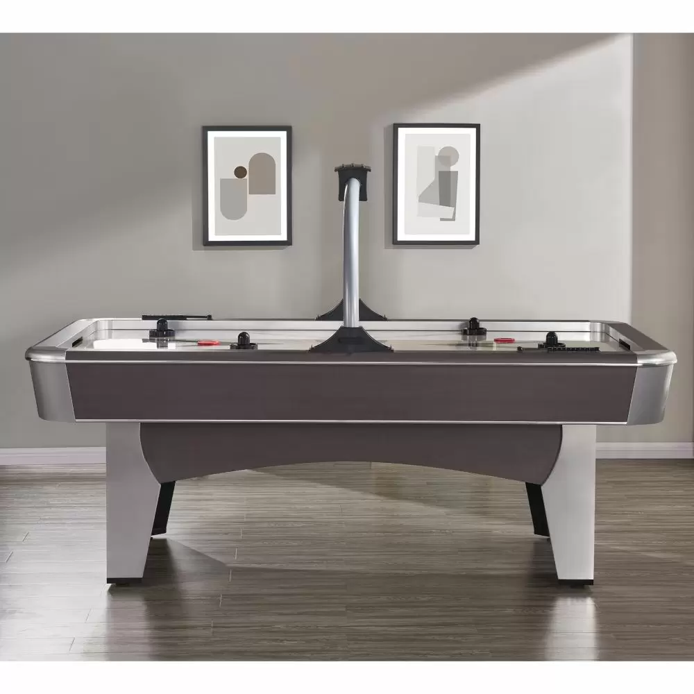 The Jensen Air Hockey Table combines smooth air hockey gameplay with sleek modern style. The table features a beautiful Edgewater finish with silver accents and trim that looks great when paired with any room décor.