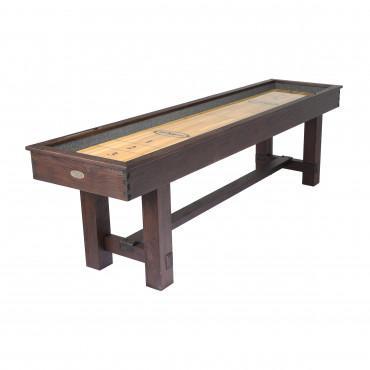 The Imperial Reno 9-foot Shuffleboard Table is an authentic pub-style table. Made of solid Aspen with an Elm veneer. and finished in weathered dark chestnut. The table has a 1.7-inch (44mm) solid wood playing surface to provide a great puck slide.