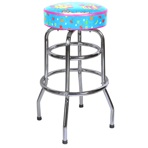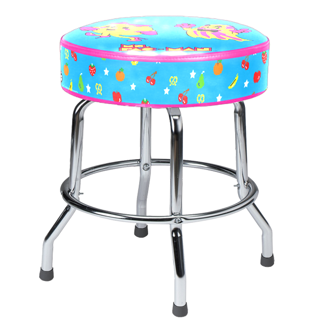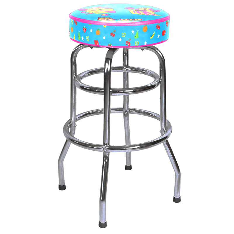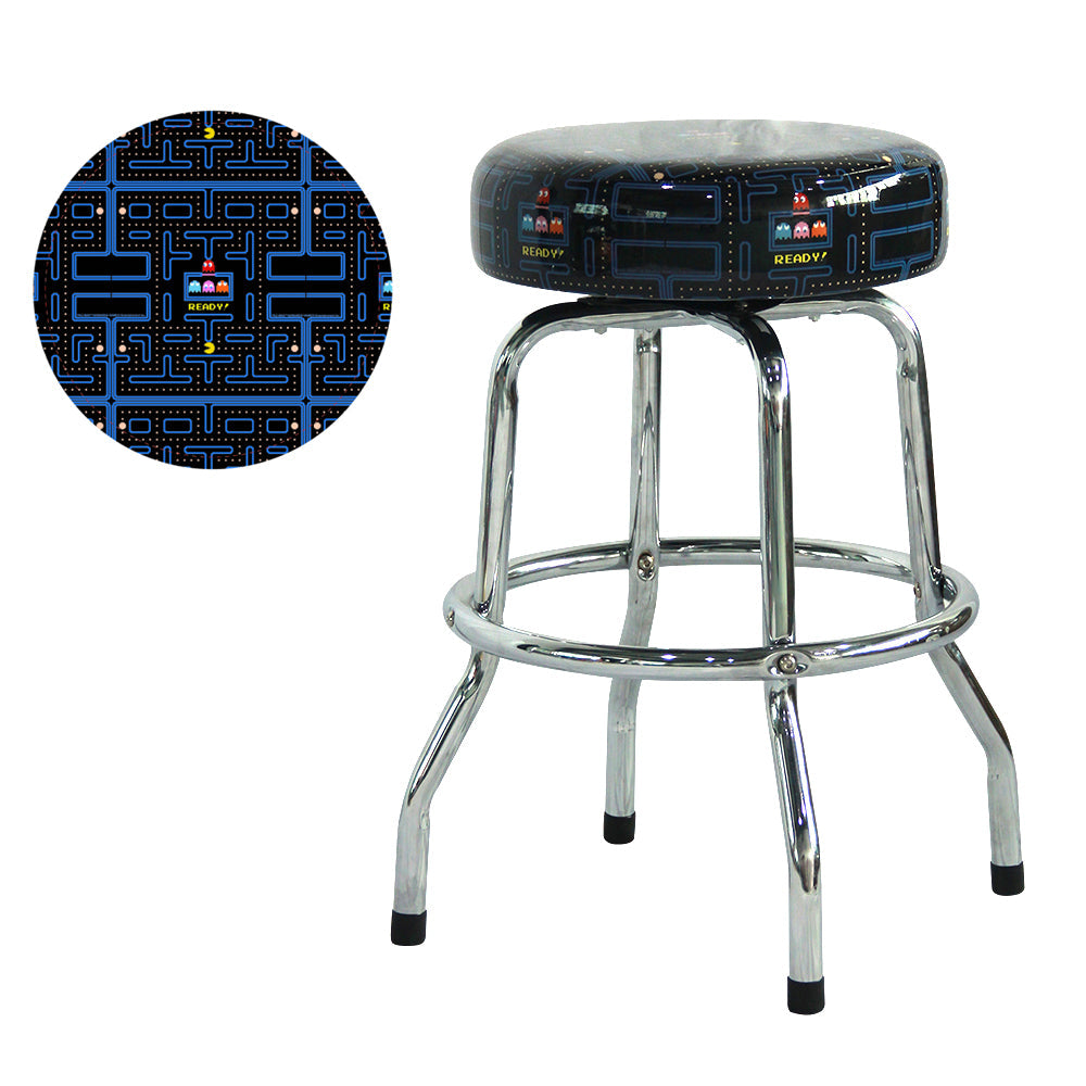 Introducing our enhanced Pac-Man barstools designed for both style and comfort, now featuring a swivel top and double rings. With sleek chrome legs and captivating officially licensed patterns, these barstools are the perfect addition to elevate your game room experience.