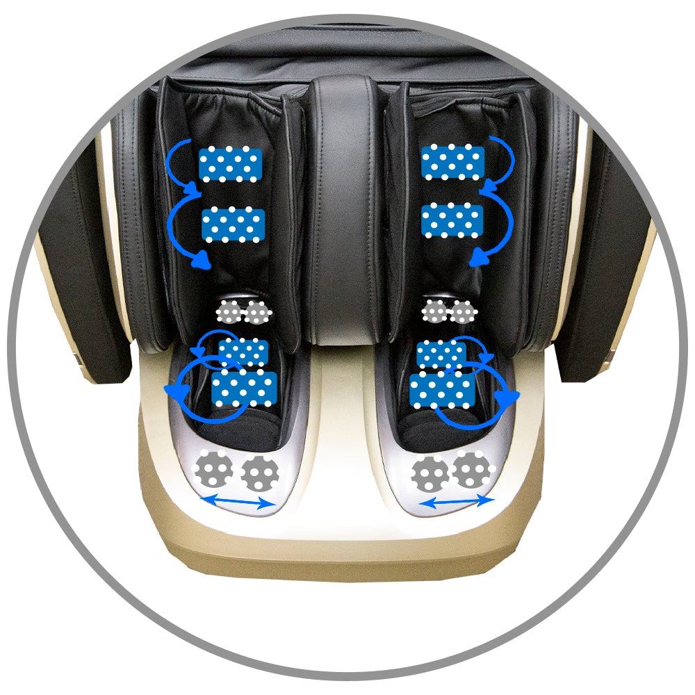 For a first-class massage experience, the Osaki OS-Pro First Class massage chair includes an SL-Track system with 3D rollers, Zero Gravity, 23 Automatic Programs, and a Touch Screen Remote.