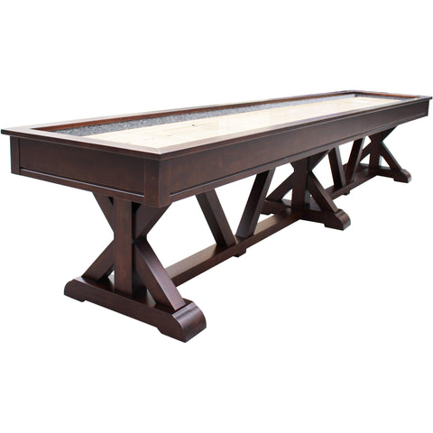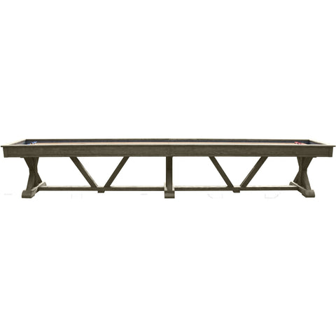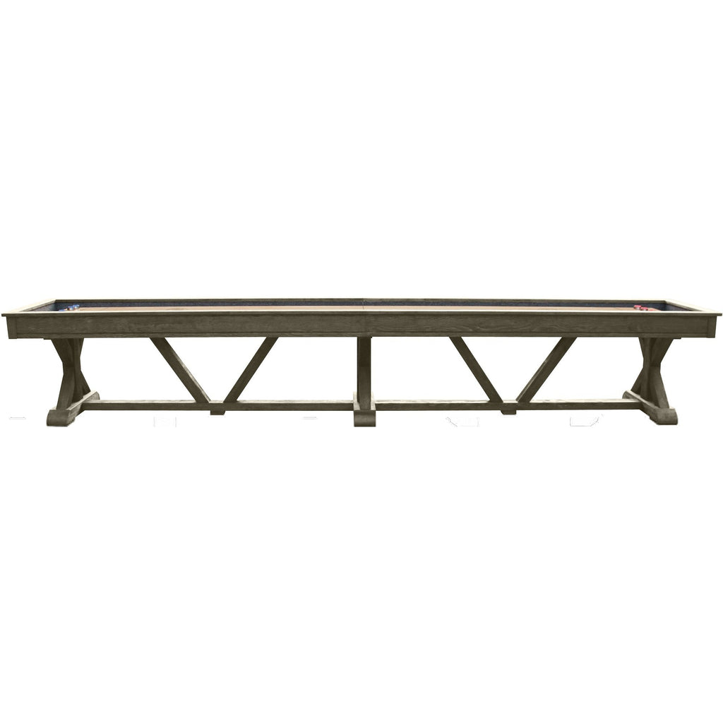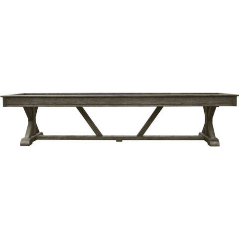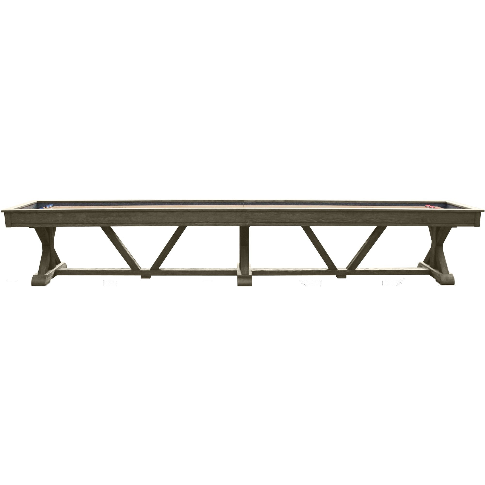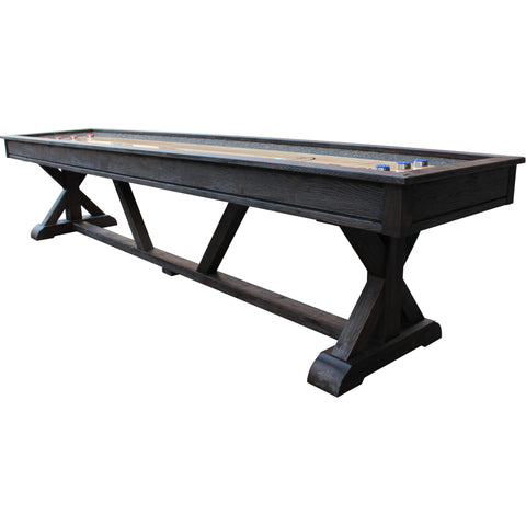 The Brazos River shuffleboards are part of the Fairfield Collection of game tables by Playcraft. The Brazos’ trestle leg design and hand finishing is inspired by old world styling and craftsmanship. Whether your choice is a timeless Chestnut or Espresso finish, or a distressed weathered Black, Barn, or Brown that appears to have been reclaimed from a century old countryside barn, the Brazos is certain to make a statement.