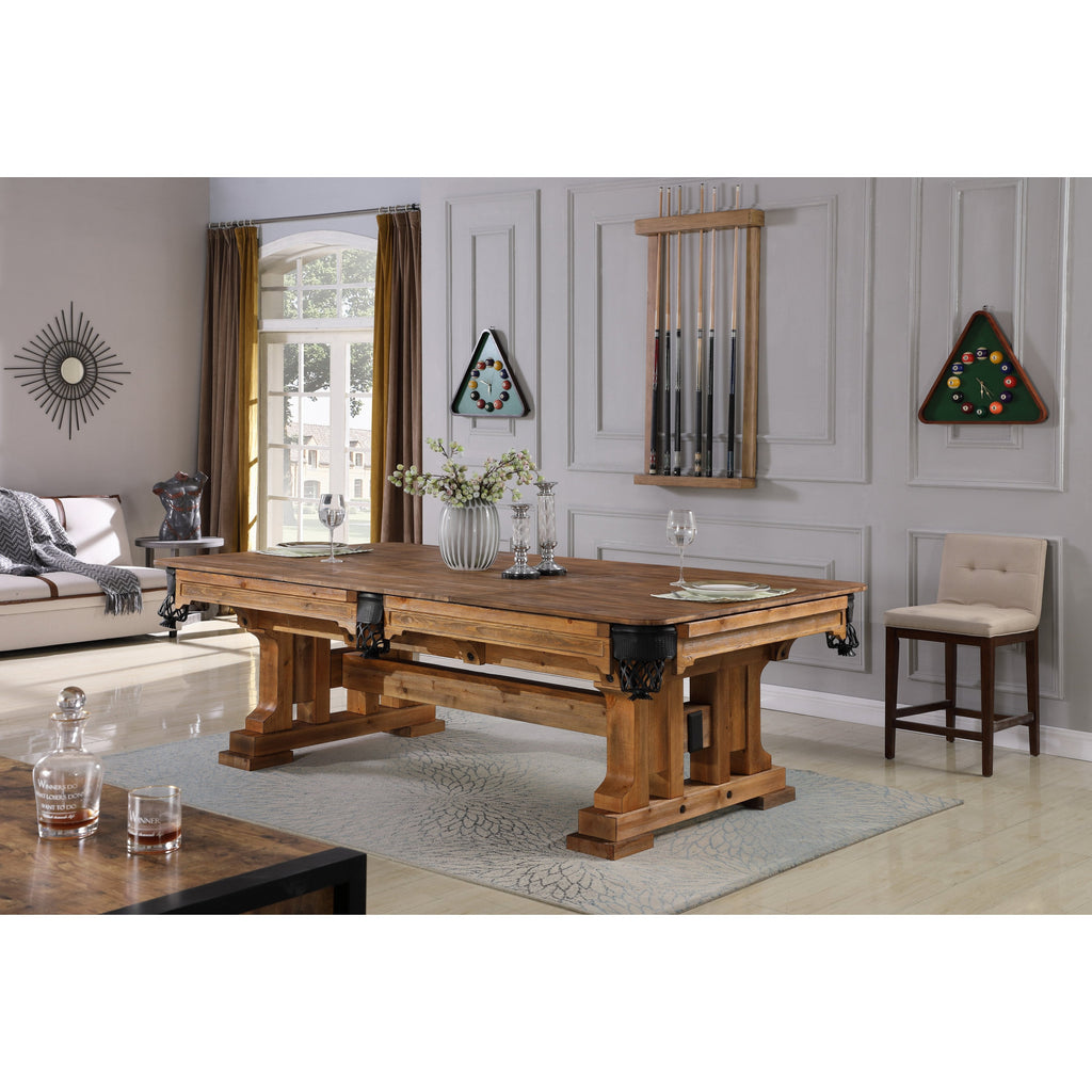 The rails are appointed with inlaid sights and the premium K55 profile gum rubber cushions provide a superior, dependable rebound. The Colorado slate pool table meets all BCA standards. The cloth provided with your table is a 21oz wool blend billiard cloth in 25 complimentary colors. The table includes a 1 year warranty. Dining Top Optional.