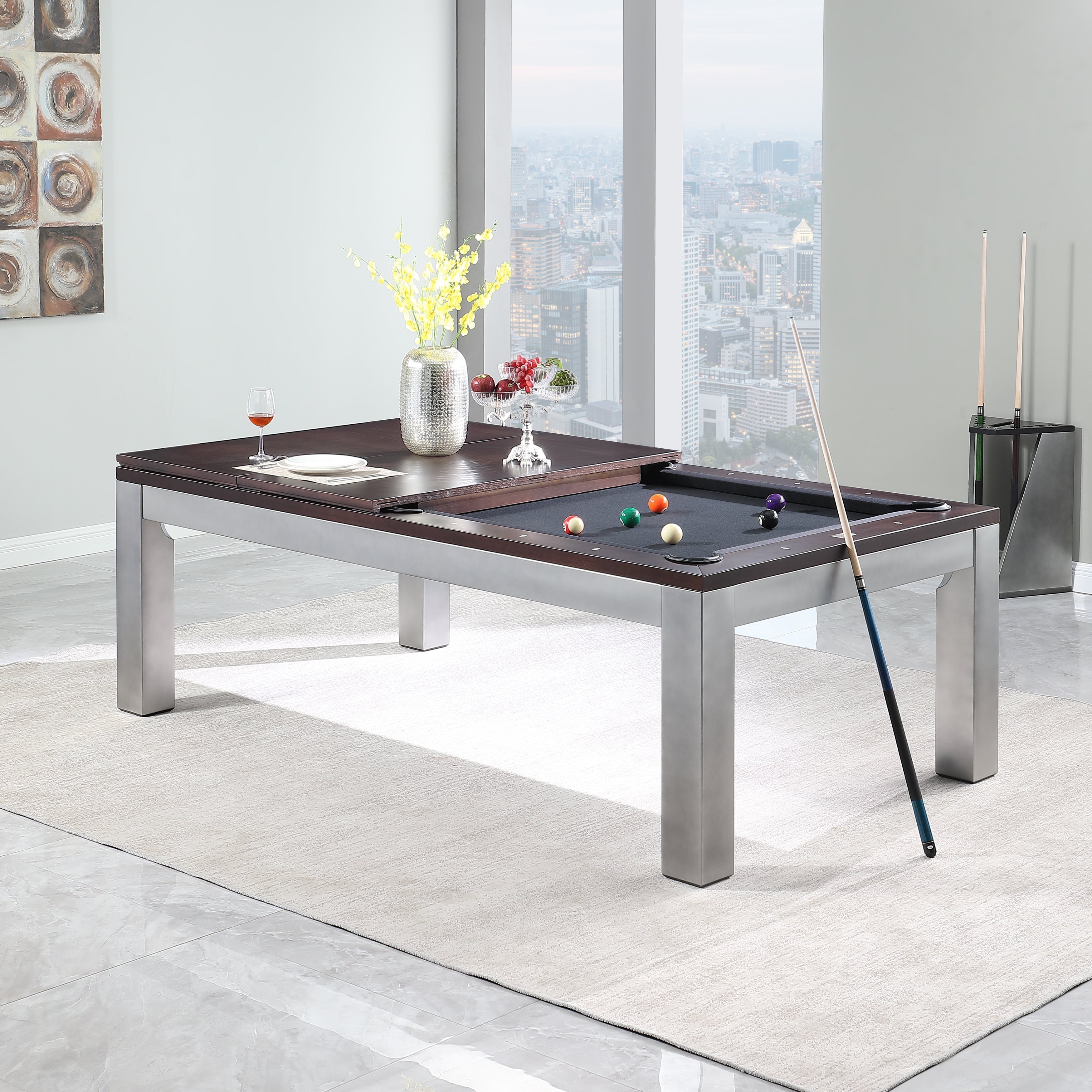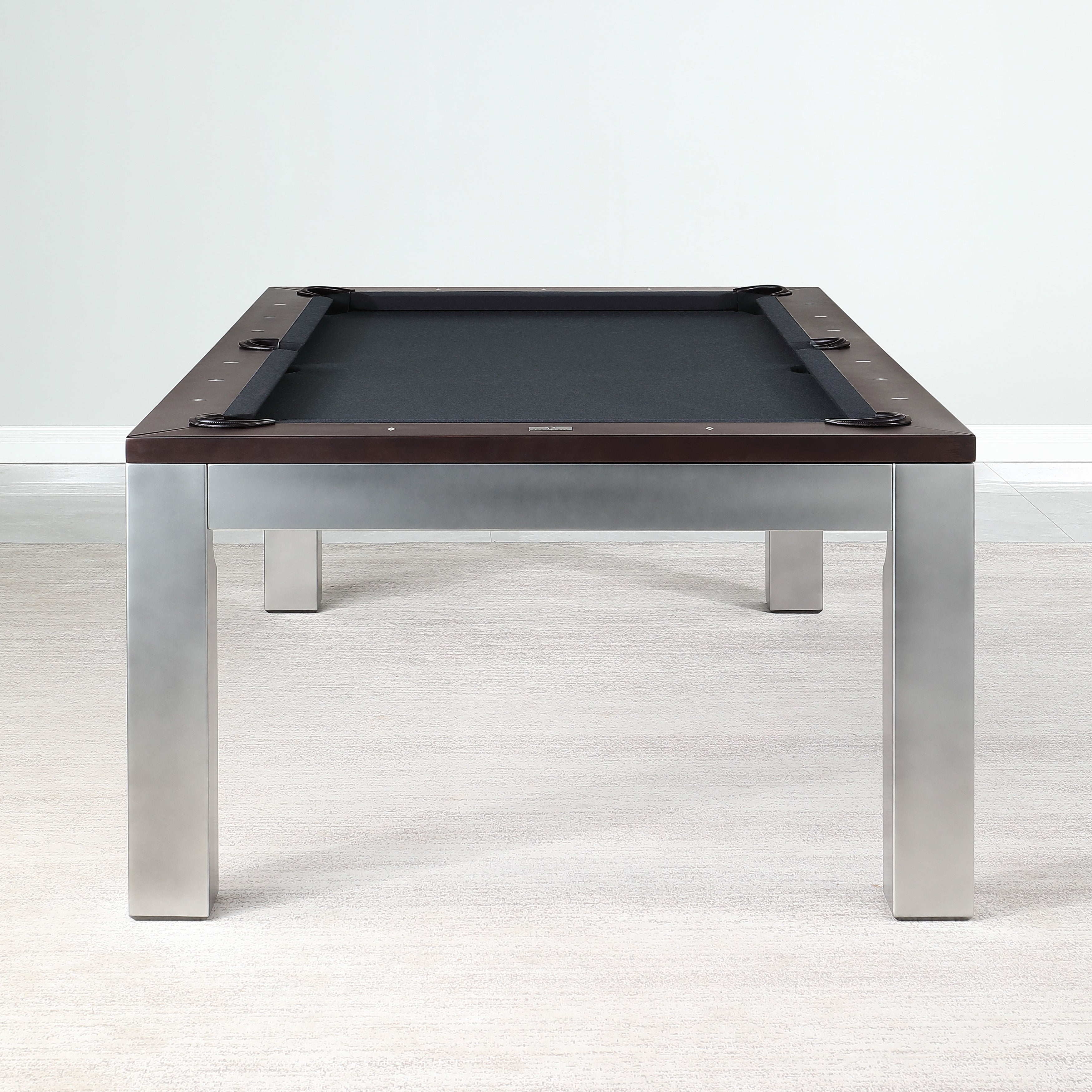 The Genoa slate pool table features a sleek, contemporary design in a Walnut on Silver finish that will stand out in any game room. More than just beautiful furniture, the high quality materials and construction will ensure many years of high quality billiards with family and friends!