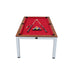 The Glacier includes a dining top and arrives fully clothed and ready to assemble - just attach the legs and you will be playing in under an hour! The playfield is constructed of resin infused MDF with a pvc coating. Matched with K66 profile rails for a genuine billiards experience.