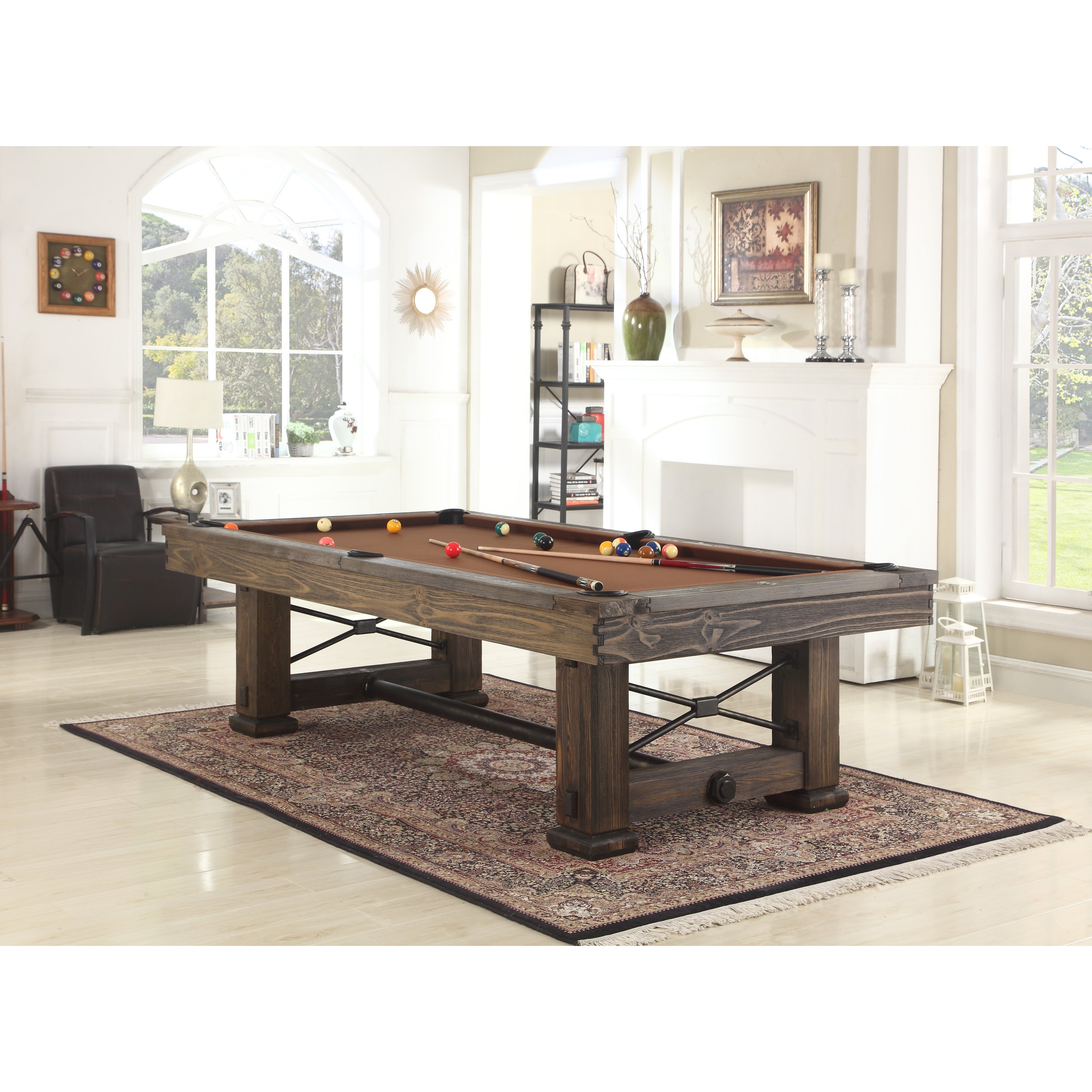 The Rio Grande slate pool table is part of the Fairfield Collection of game tables by Playcraft. The Rio Grande’s post and beam leg design, artisan joinery and hand finishing is inspired by old world styling and craftsmanship. Offered in Weathered Bark or Weathered Raven that appears to have been reclaimed from a century old countryside barn, the Rio Grande is certain to make a statement.