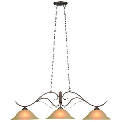 Curvaceous framework offers exceptional elegance to this three-light billiard pendant, which boasts an oil rubbed bronze finish and opaque glass dome shades.