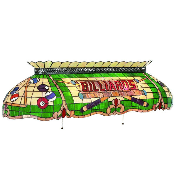 Traditional stained glass lends a classic aura to this 50-inch tiffany-style billiard light, which features copper foil construction.