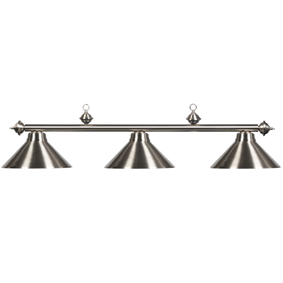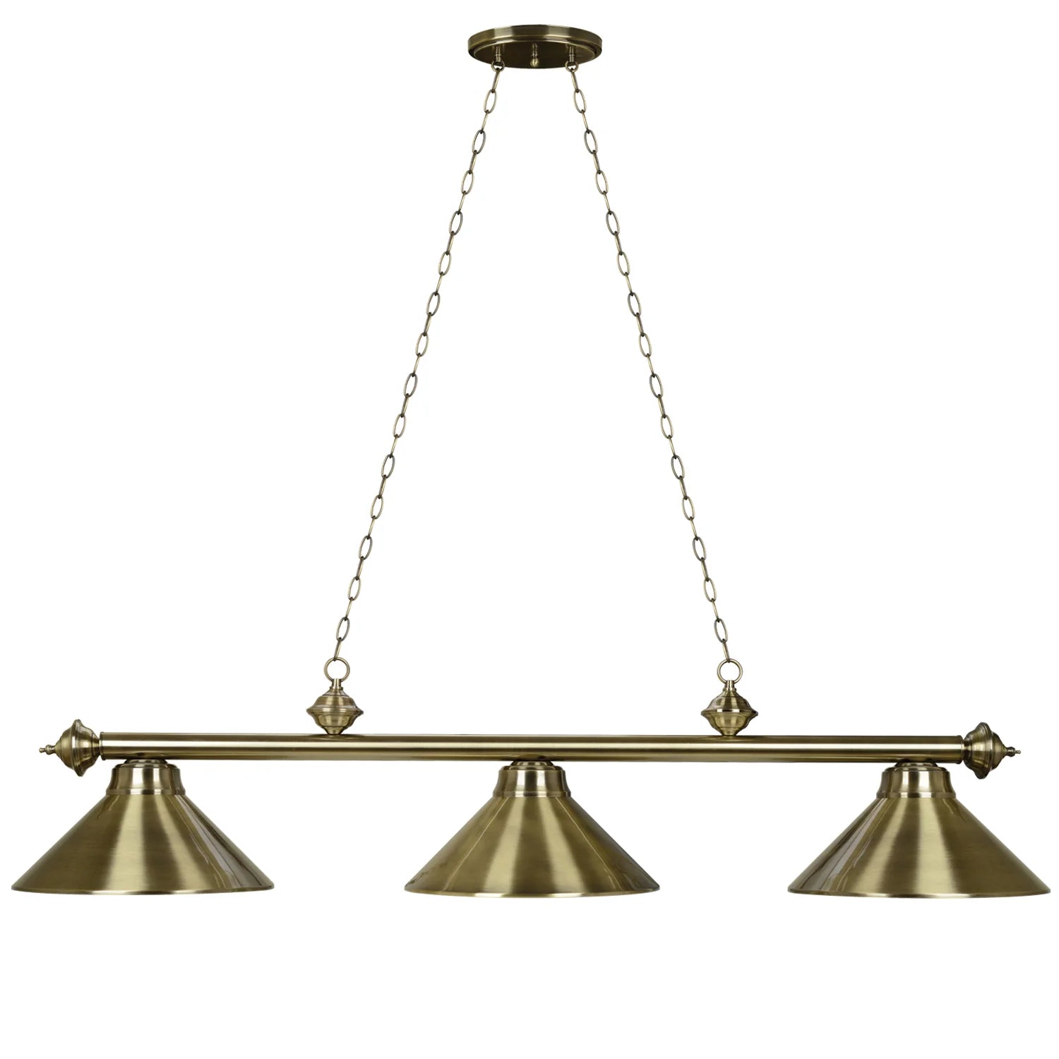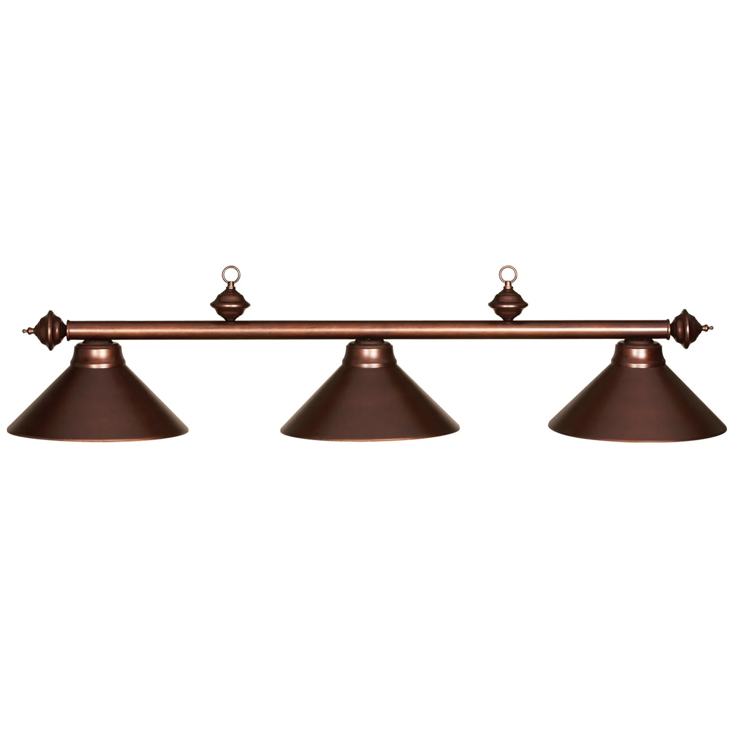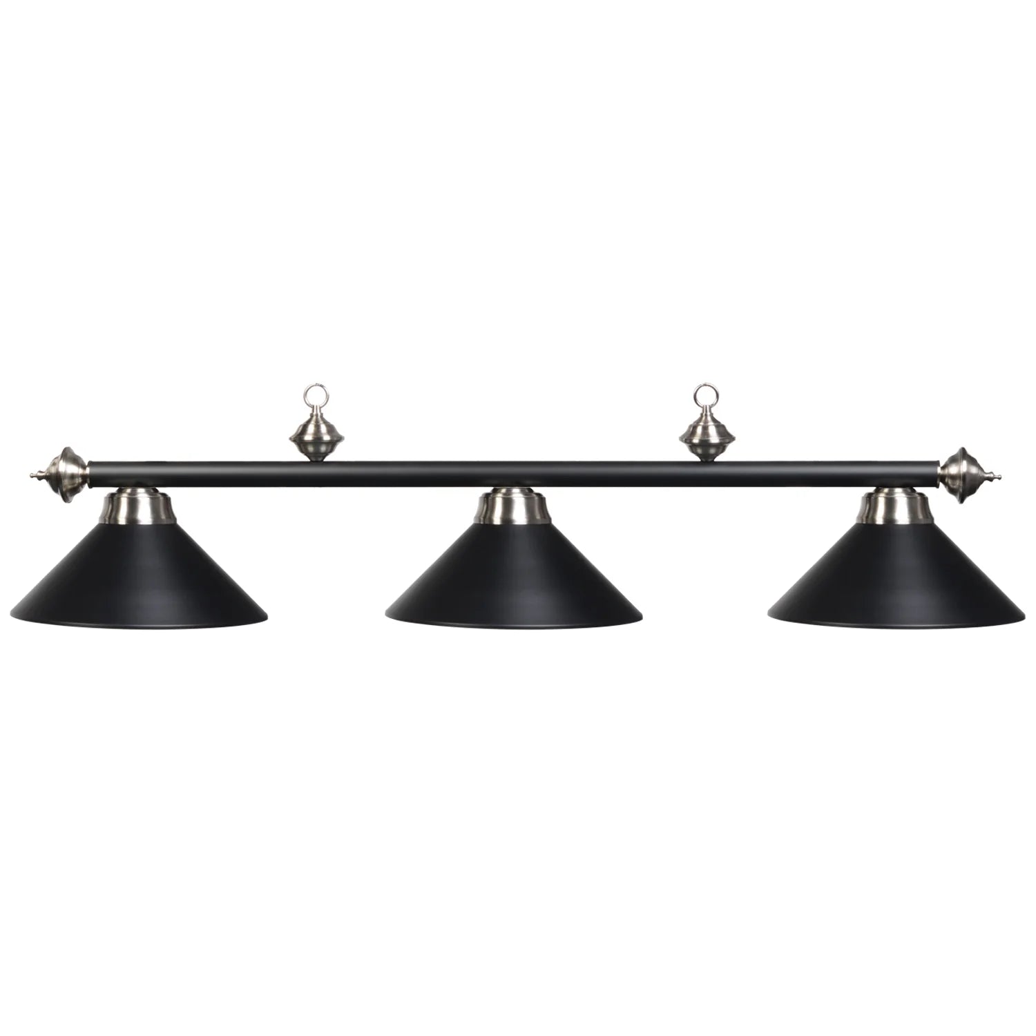 Classic and sophisticated, this 54 inch, 3-light metal billiards light fixture is exactly the upgrade your game room needs. Offering plentiful lighting for the home bar or for a pool table, this fixture features three metal cone shades to deliver directed illumination.