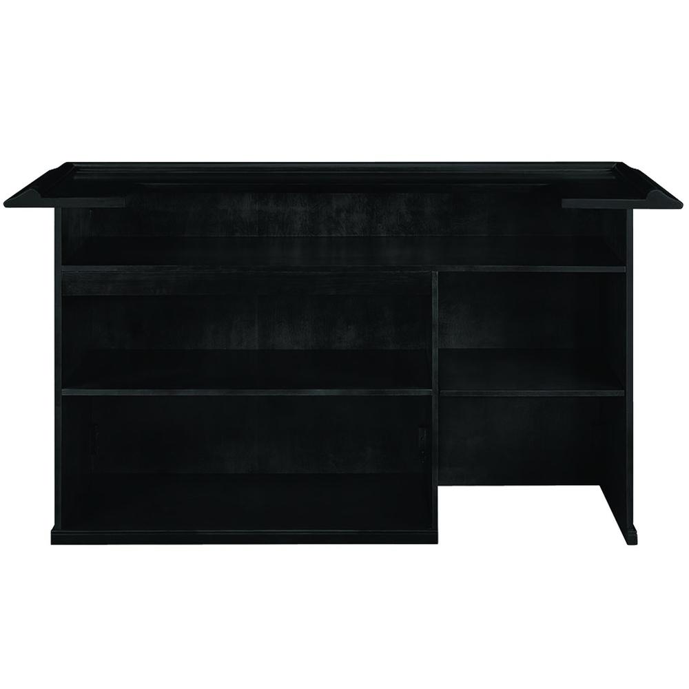 A must-have for the host or hostess, this dry bar cabinet is sure to become the centerpiece of any space, offering a stylish paneled front with raised molding that adds drama to the design.