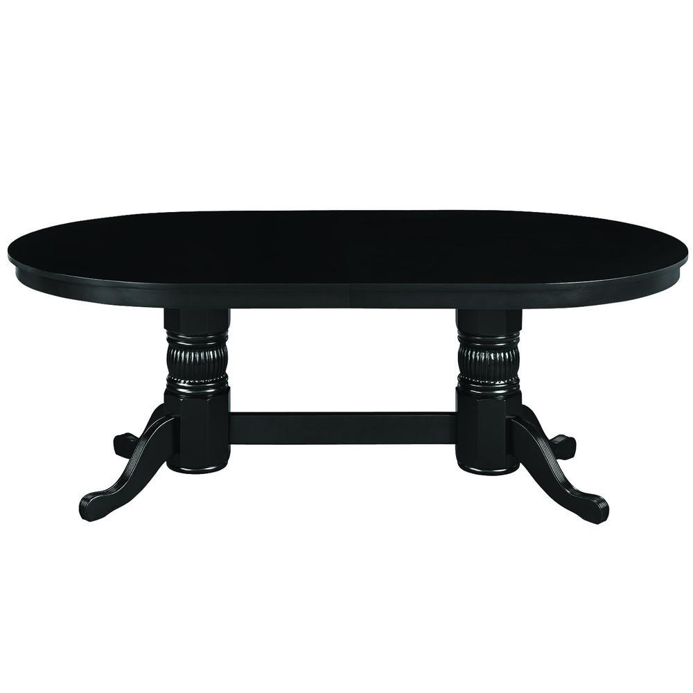Easily converting from a dining table, this black finish solid wood game table is perfect for hosting guests or indulging in a game of Texas Hold 'Em.