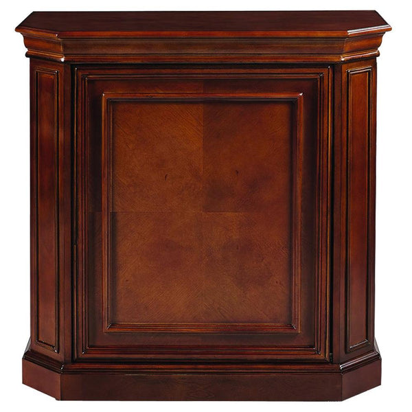 In an appealing chestnut finish, this solid wood bar cabinet boasts plenty of interior storage for all the necessities of a grate home bar.