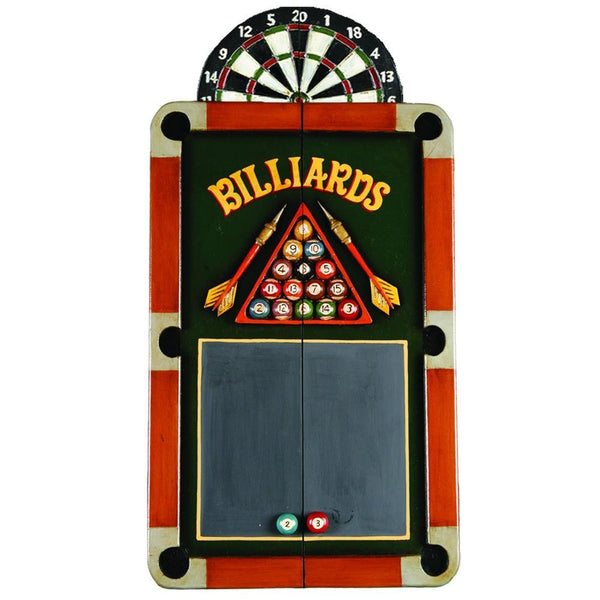 Stash game room darts in this cheery, hand-painted billboard-themed cabinet, and enjoy the extra bonus of a scoreboard.