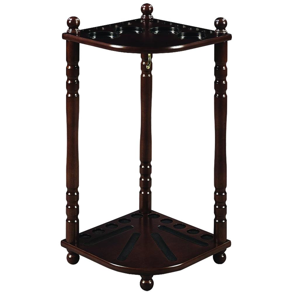 Spindle-style legs create a traditional flair for this solid wood floor pool cue rack in a rich cappuccino finish.
