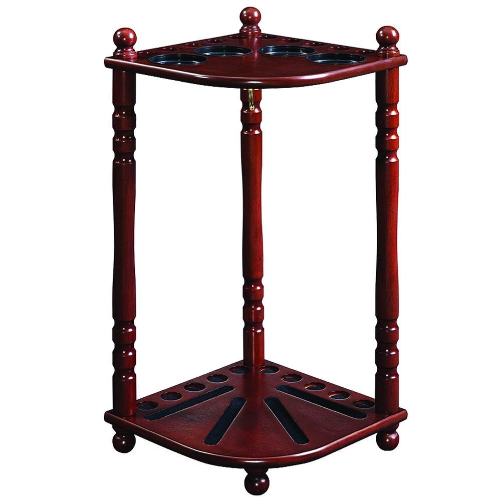 Spindle-style legs create a traditional flair for this solid wood floor pool cue rack in a rich english tudor finish.