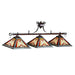 Designed specifically for your game room, this linear 3-light billiards pendant features a trio of beautiful stained glass shades in rich, warm colors, with a metal framework in a rustic iron finish.