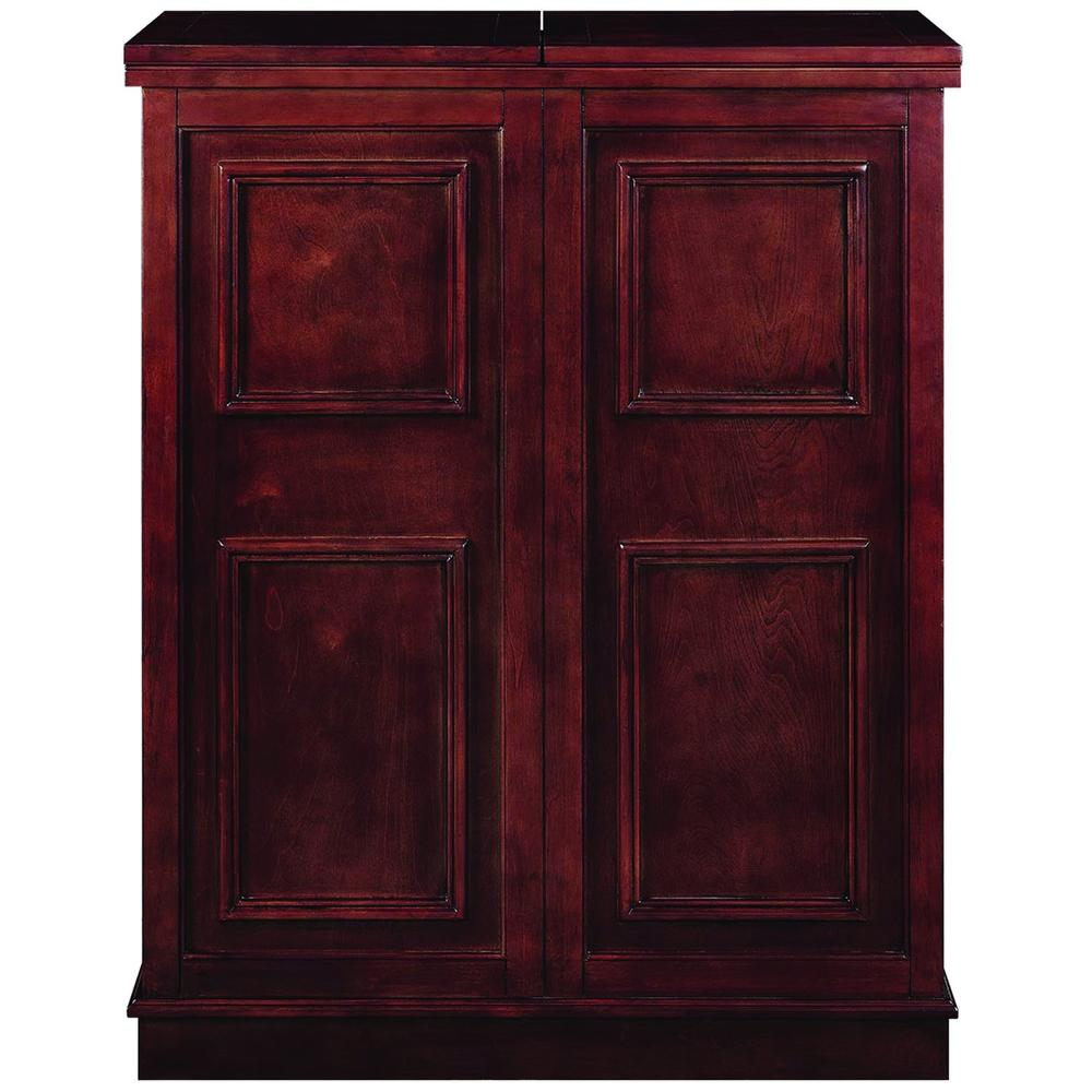 A must-have for the host or hostess, this dry bar cabinet is sure to become the centerpiece of any space, offering a stylish paneled front with rai...