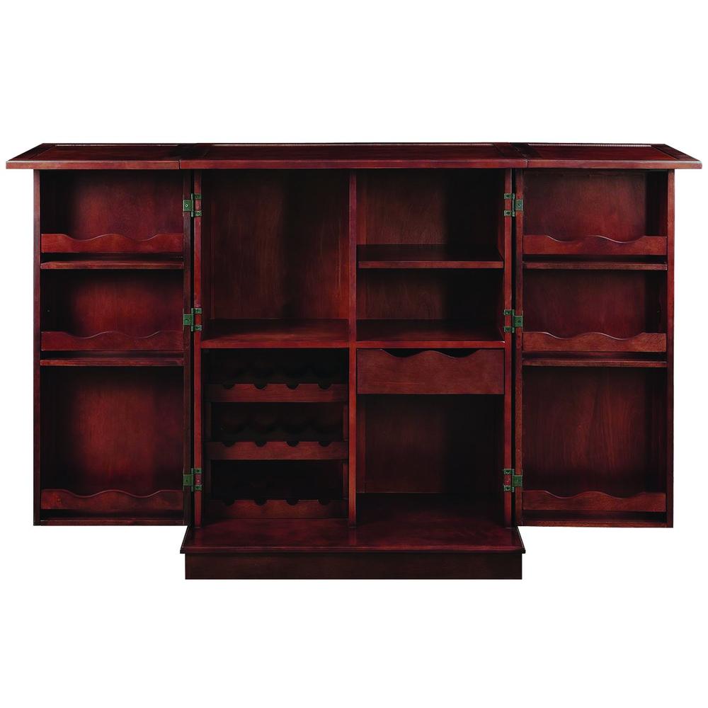 In an appealing cappuccino finish, this solid wood bar cabinet boasts plenty of interior storage for all the necessities of a grate home bar. Featu...