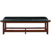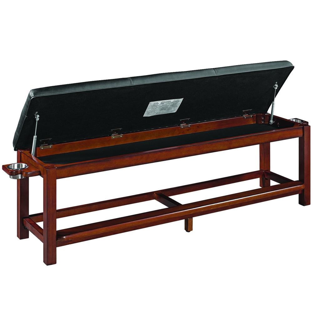 Stash essentials within this wood storage bench with a padded seat, crafted with a beautiful chestnut finish.