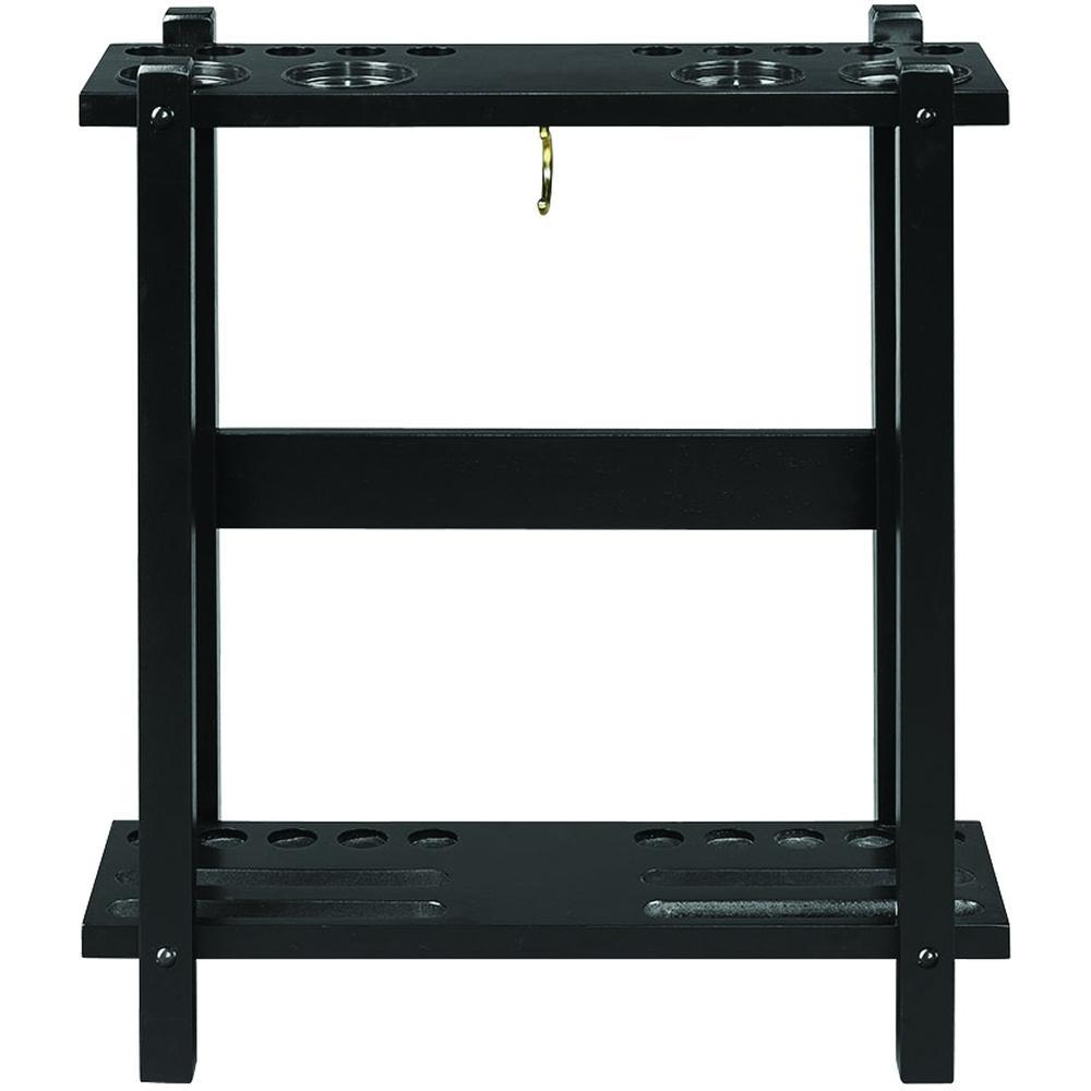 Crafted in solid wood with a classic black finish, this floor pool cue rack is a fantastic way to add stylish storage and organization to your game room.