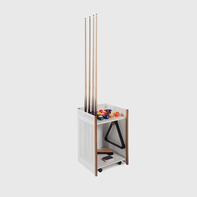 Designed with the same sleek lines as the Diagonal pool table, it’s an essential accessory for anyone who falls in love with this elegant pool table, fulfilling two functions: it’s a storage unit for your pool accessories after the game, and it’s a companion unit while you play, elegantly and harmoniously skirting around the table.