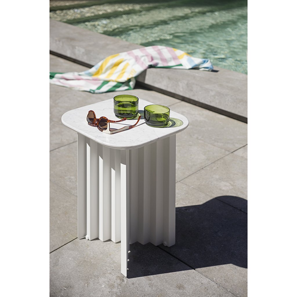 Plec is a collection of coffee and side tables that are as happy together as they are alone. With their accordion-shaped legs, all three Plec tables (large, medium and small) love creating light and shade effects at any time of day.
