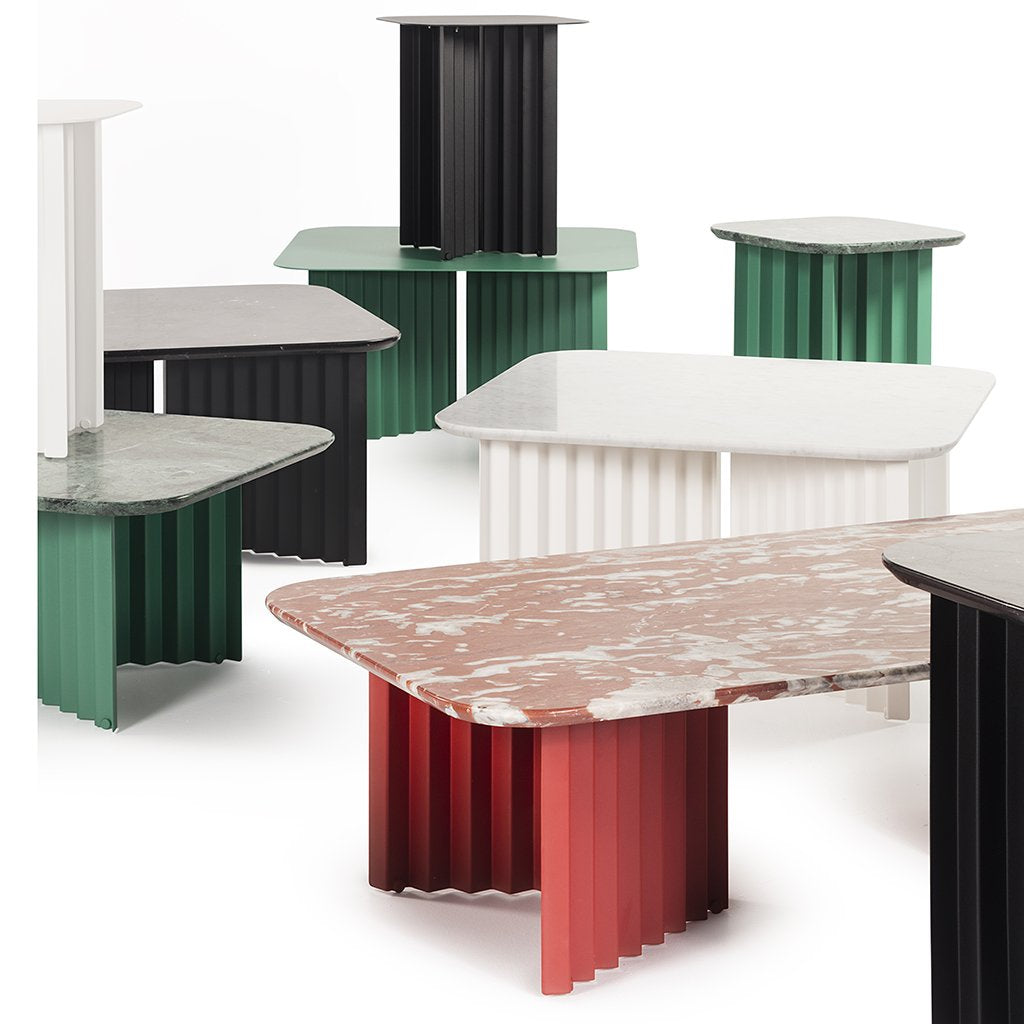 The Plec table has a steel structure coated with polyester paint. The table top comes in steel or marble, with a range of colors available for both options. So you can combine sizes, colors and finishes any way you like.
