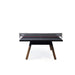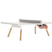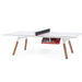 When not in use, all the sporting elements – the net, the paddles and the balls – are stored in a discreet side drawer, completely out of sight. And the table is ready for other uses.