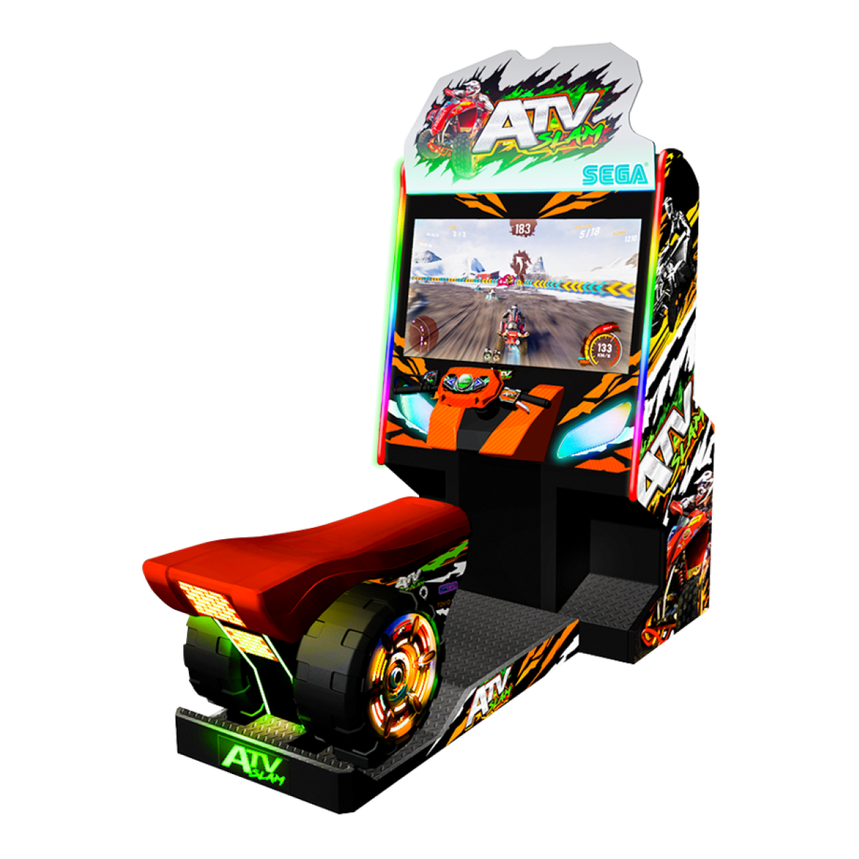 ATV Slam is now available in a standard non-motion cabinet. The new design features a smaller footprint but can still link up to 4 players for a true off-road racing experience and maintains the same thrilling gameplay as the Deluxe cabinet.