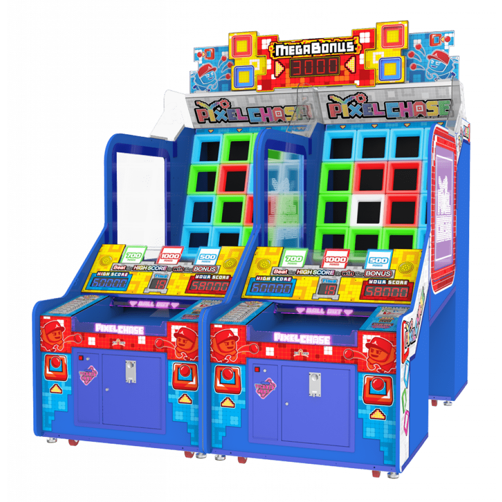 Pixel Chase is a brand new skill-based redemption game in a brightly LED lit cabinet. Players demonstrate their pitching skills by throwing as many balls into the 4x4 LED lit target holes within the time limit.