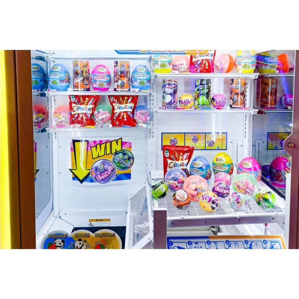 The contemporary cabinet features colour changing lighting which surrounds the prize window, prize outdoor and control panel, which really draws the players attention to the game. The bright interior lighting and adjustable prize display shelves also create a great presentation for any type of prizes.