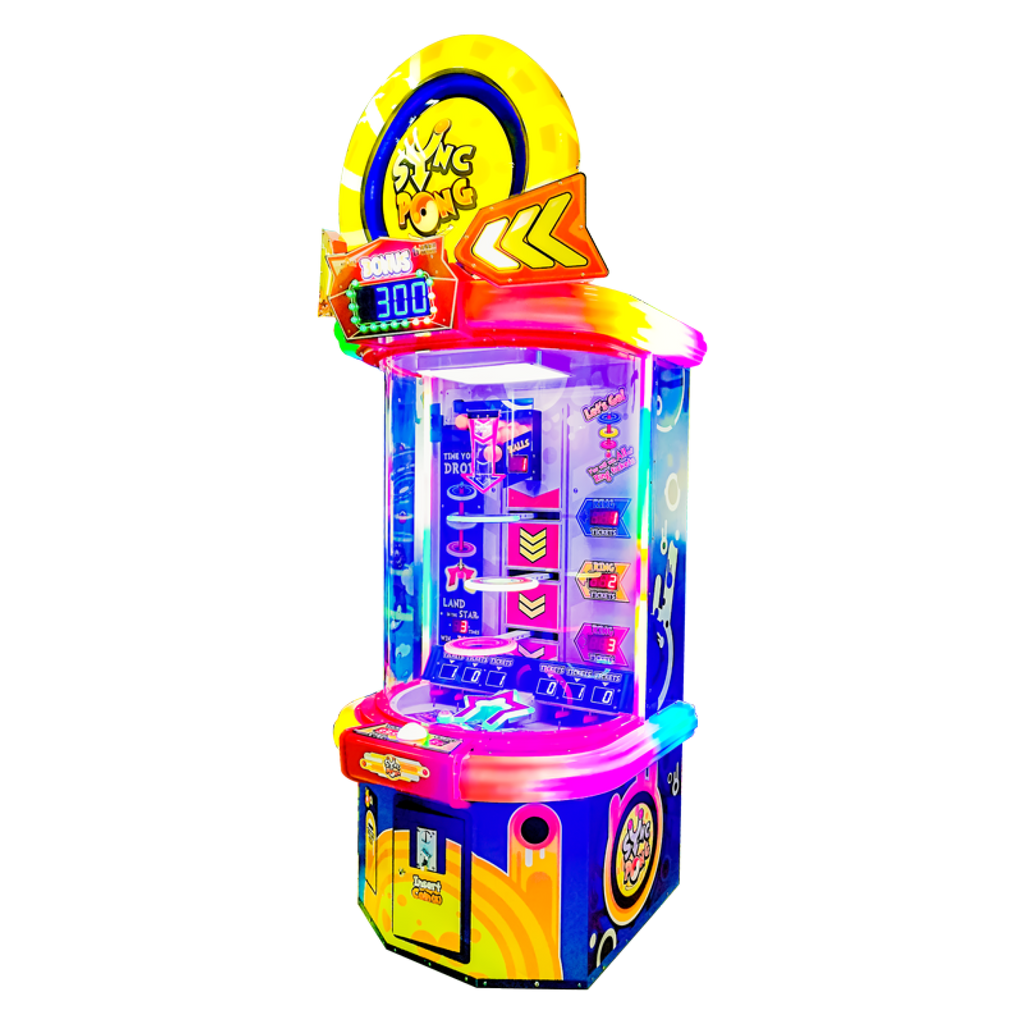 Sync Pong is an exciting skill-based redemption game for amusement locations across the world. The fabulous cabinet features colour changing lighting that attracts players to the game. The small footprint and high income potential makes this a great game perfect for arcades and FEC.